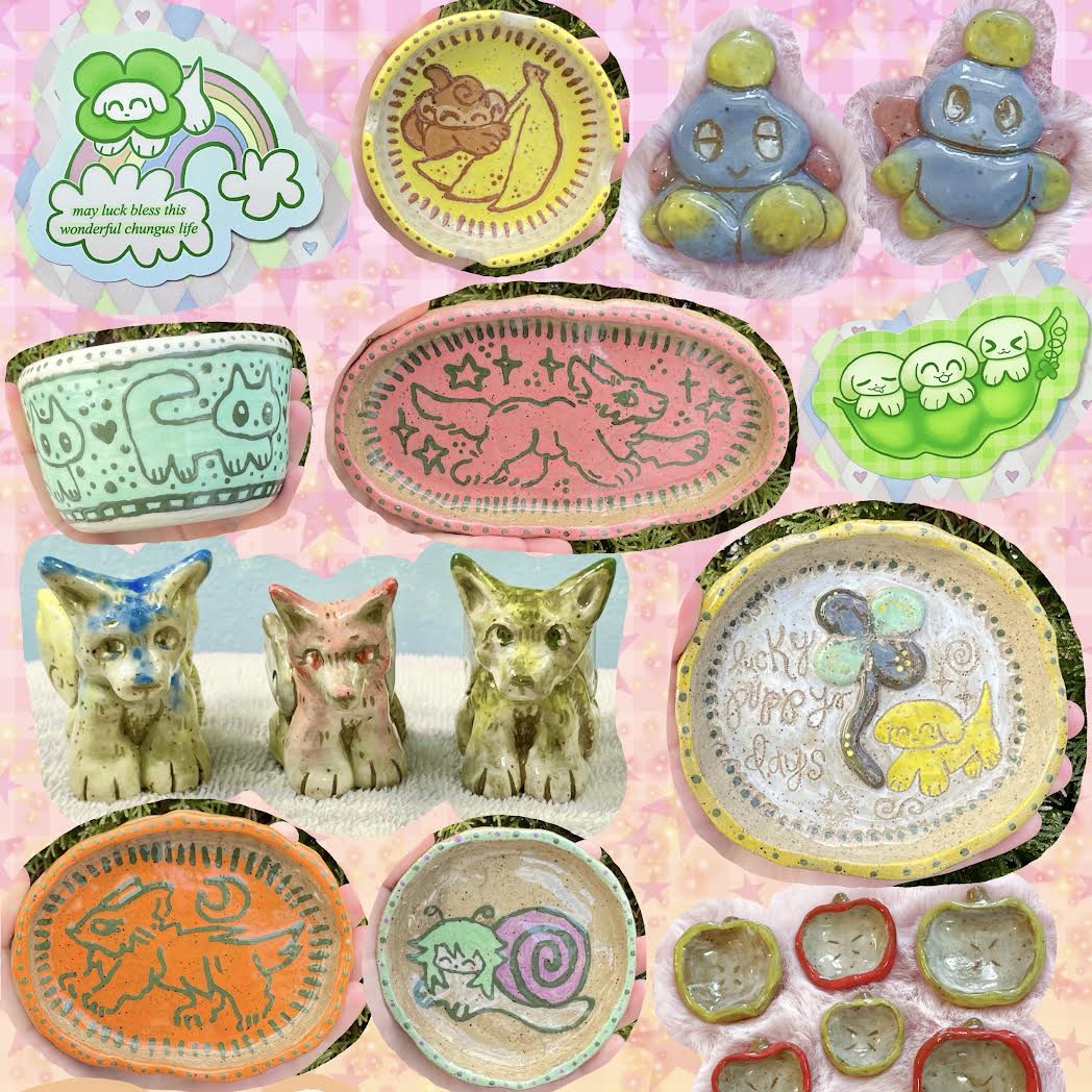 lucky puppy days yellow green handmade ceramic stoneware bowl!