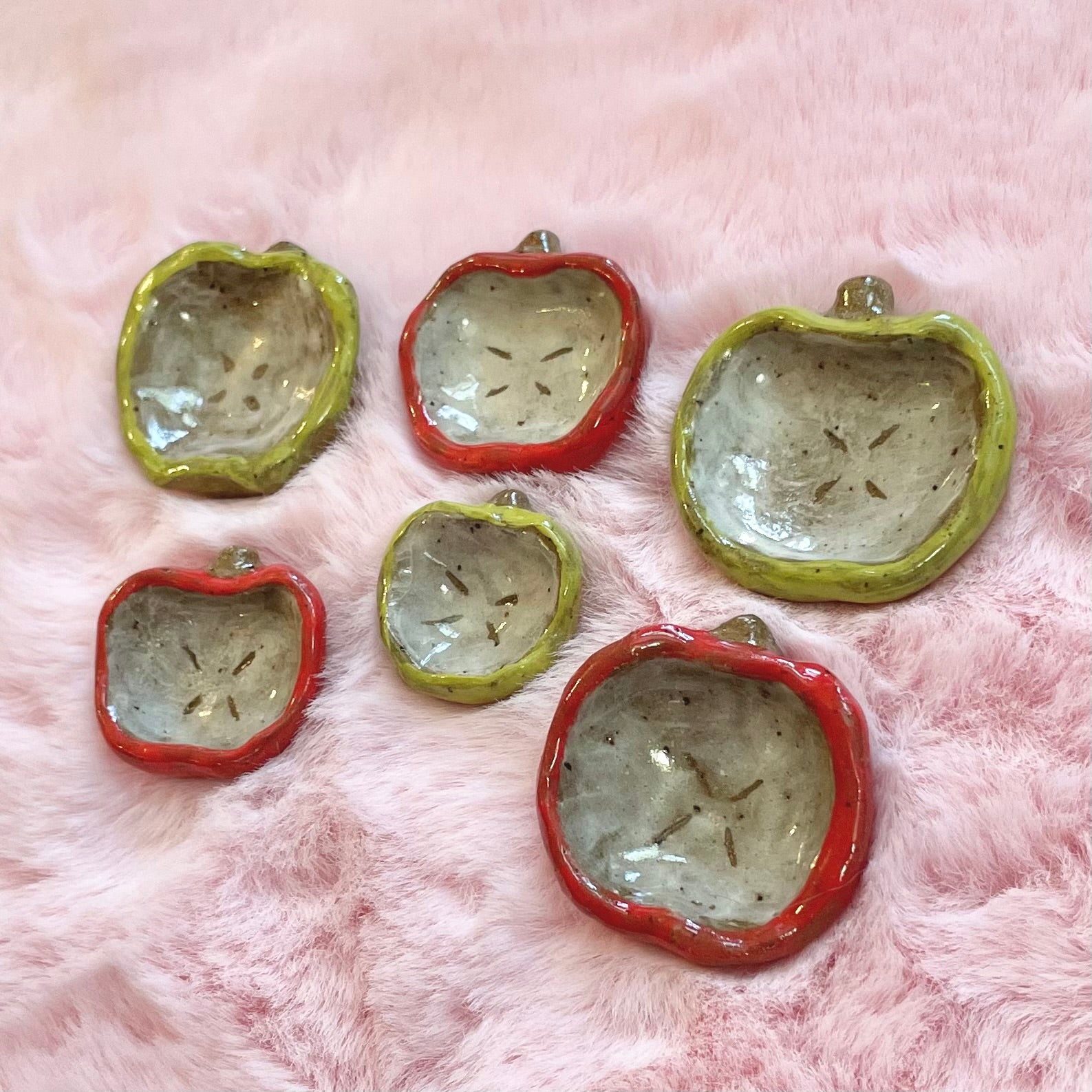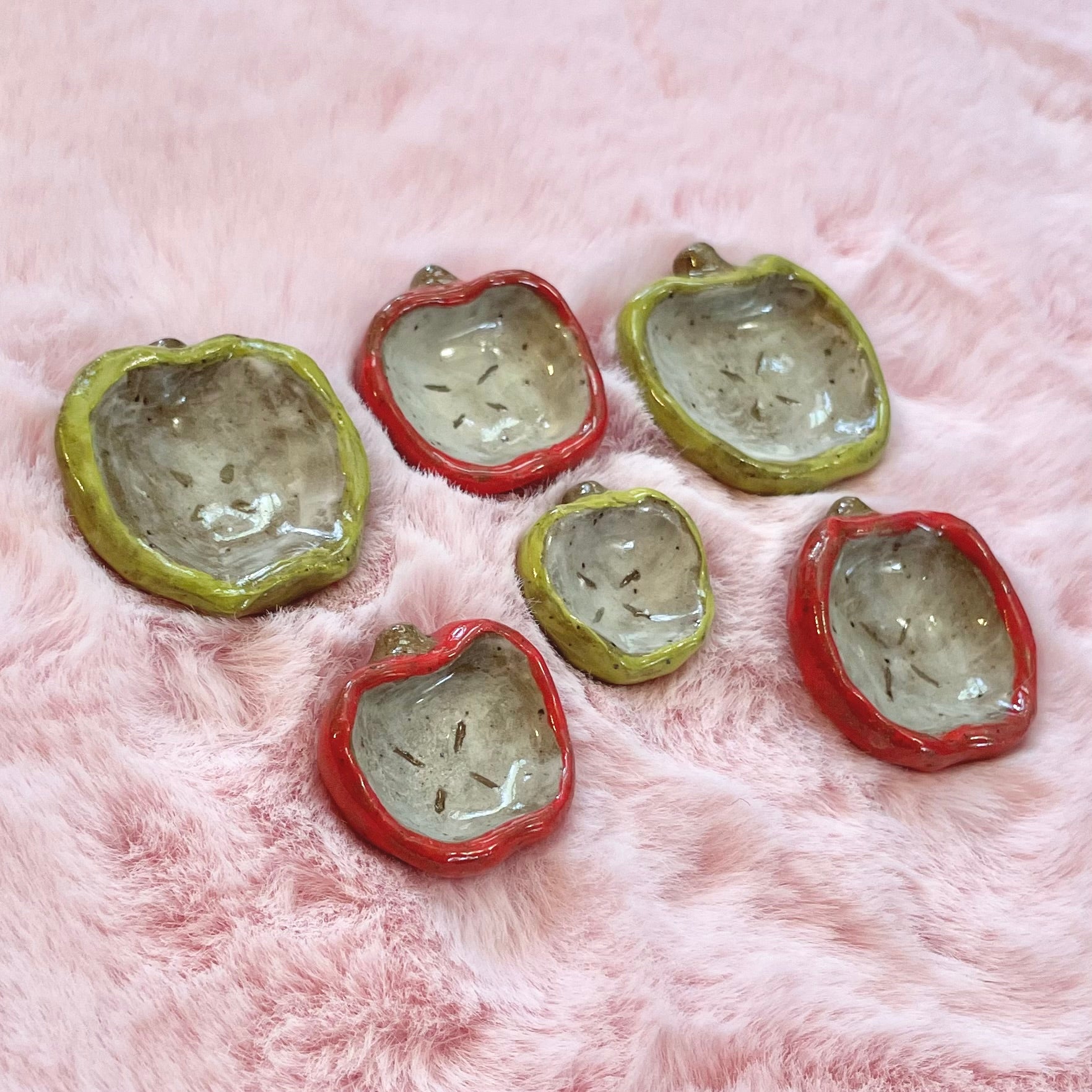 red and green apple handmade ceramic stoneware pins!