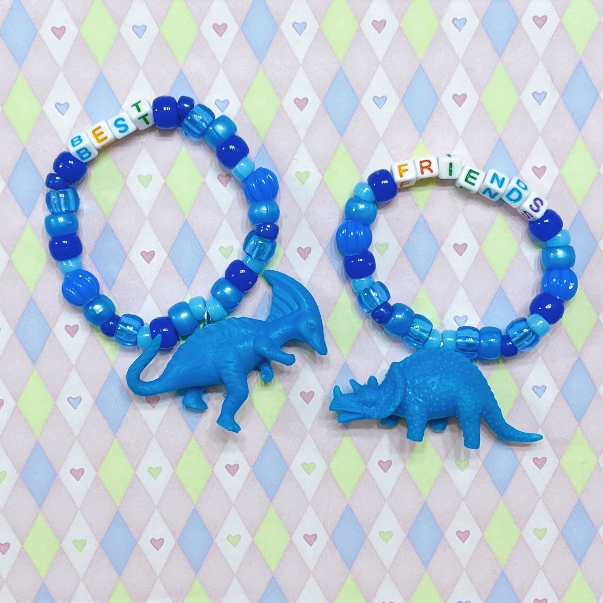 best friends bff blue dinosaur handmade kandi bracelet set!
