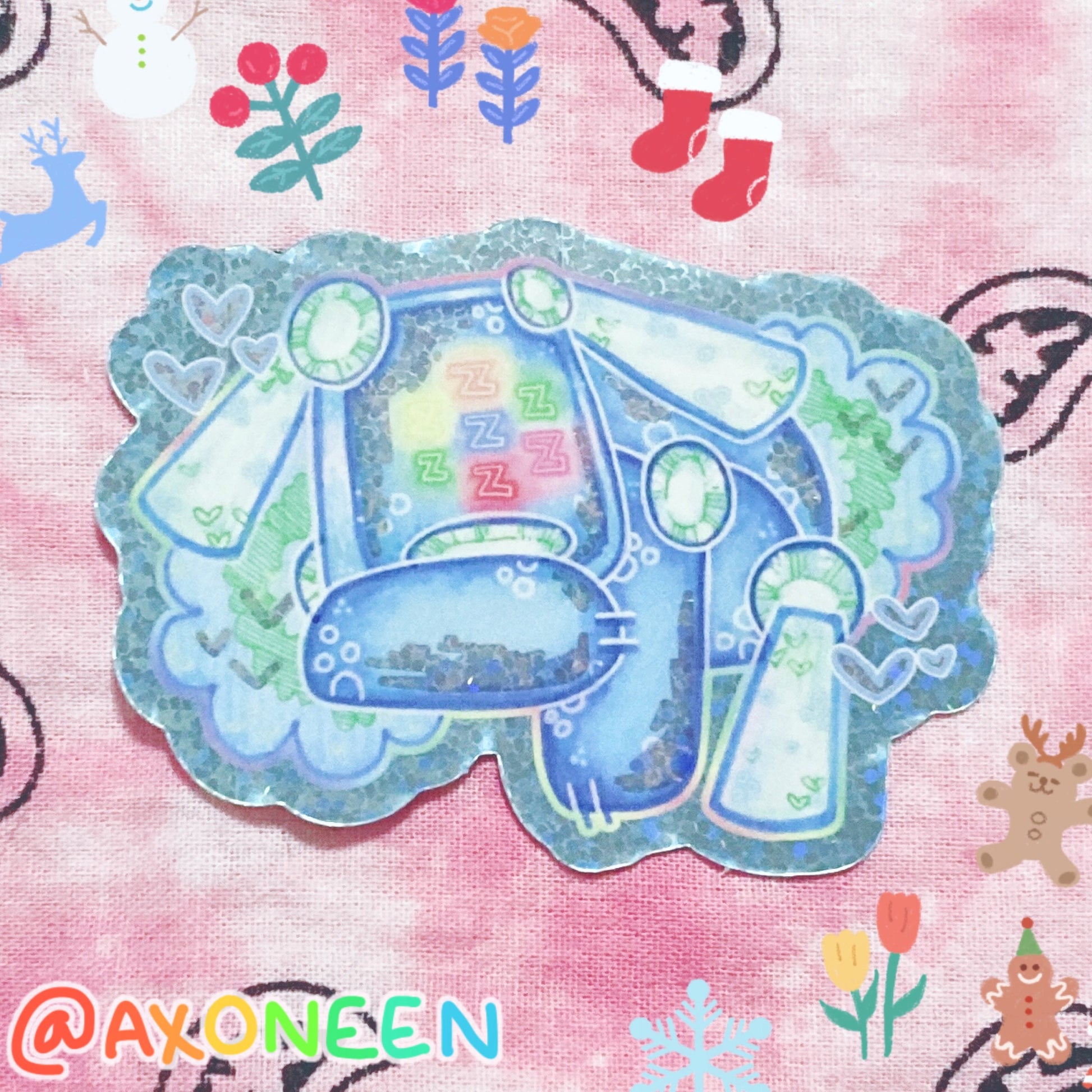 blue sleeping i-dog toy glitter holographic vinyl sticker! (3")