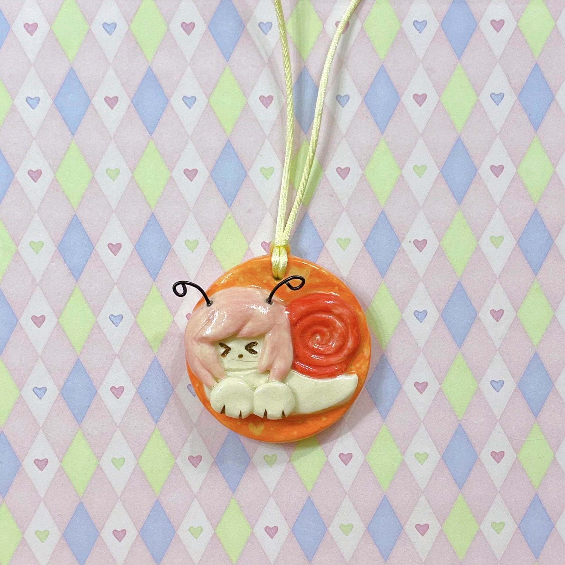 pink & red snailgirl kawaii ceramic stoneware necklace!