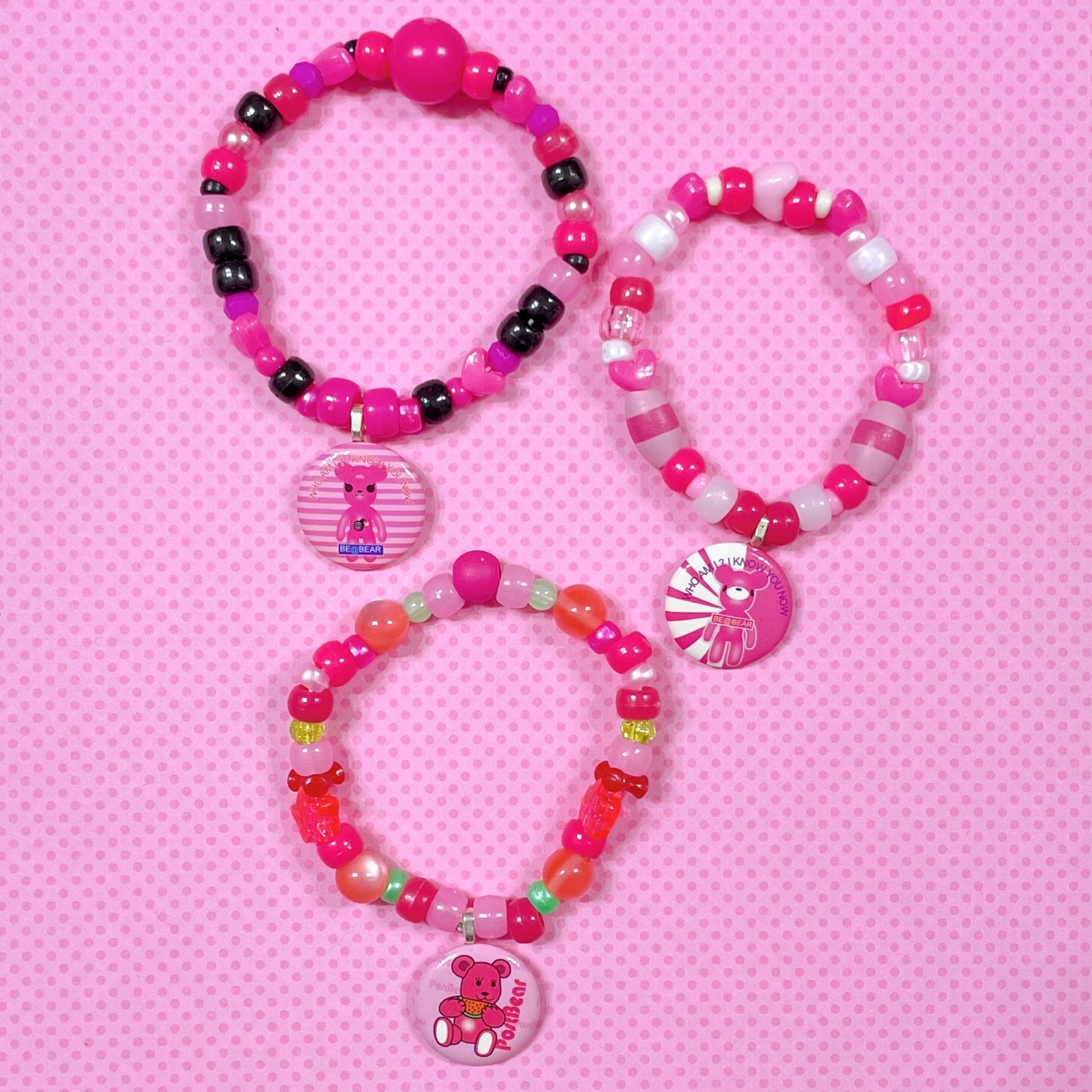 bearbrick pink 3 piece handmade kandi bracelet set!