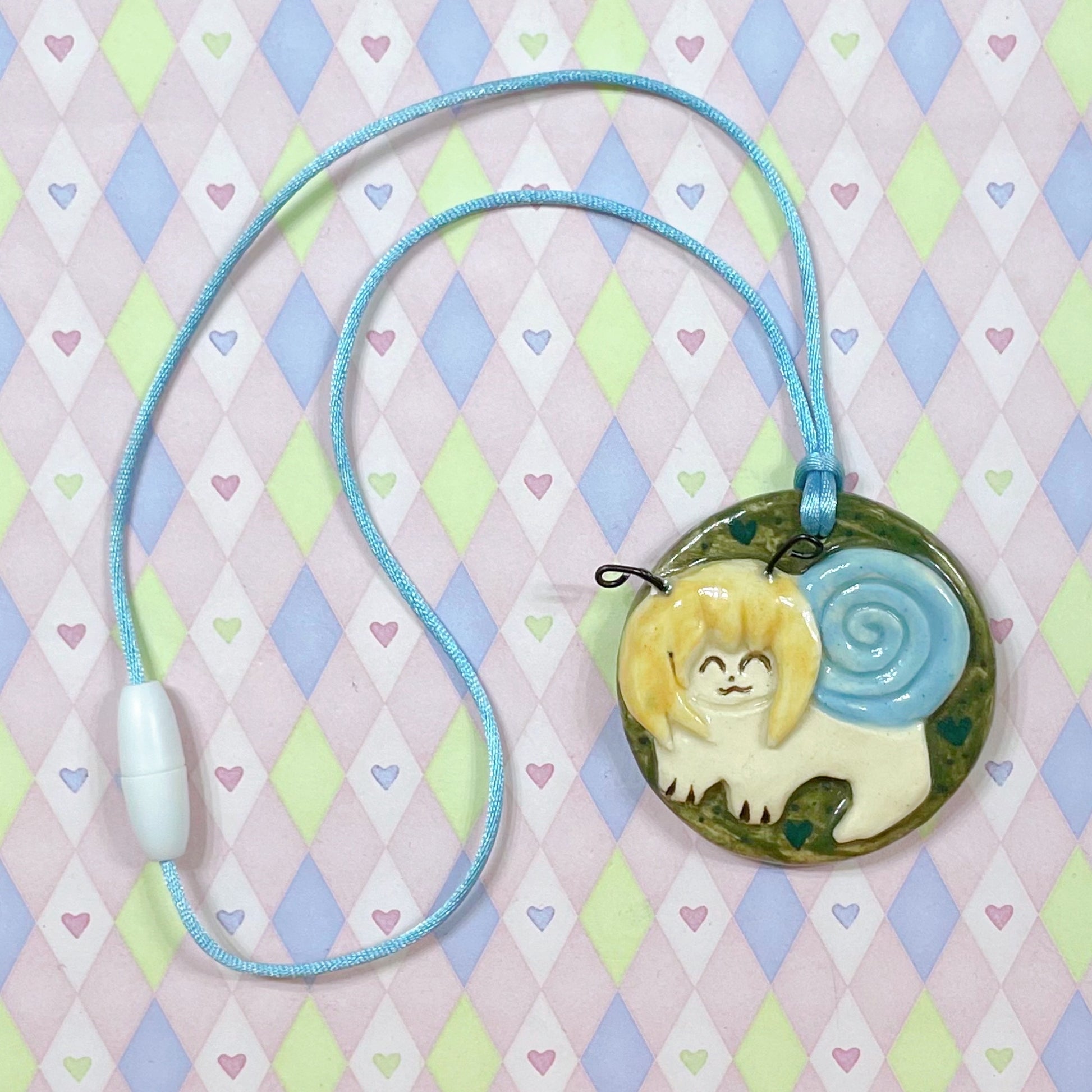 yellow & blue snailgirl kawaii ceramic stoneware necklace!
