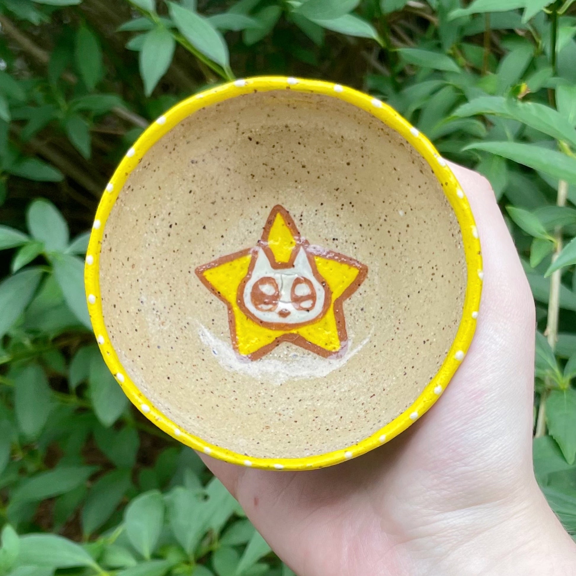 starcat white brown yellow kawaii stoneware ceramic bowl!
