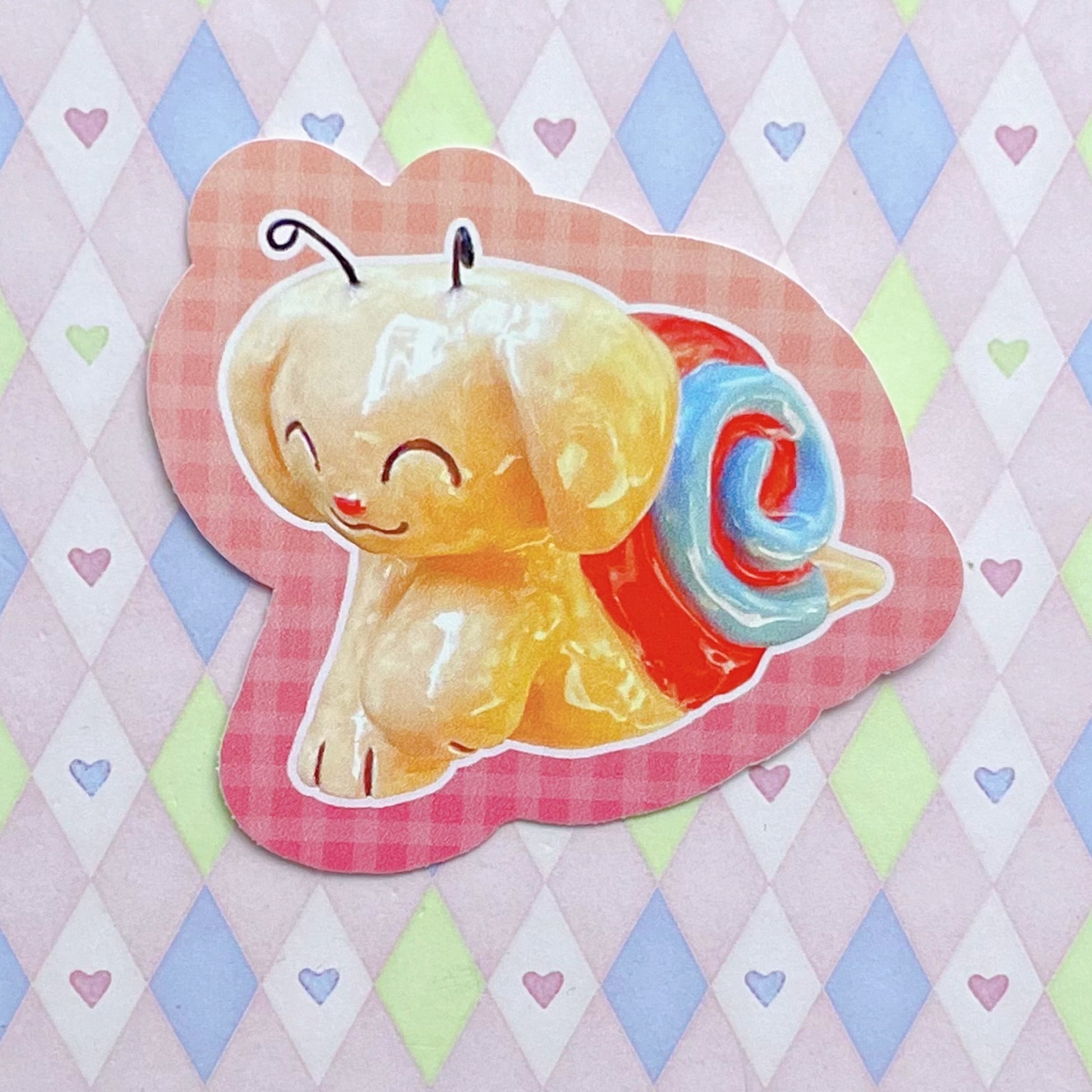 ceramic snail puppy red yellow kawaii cute vinyl sticker! (3")