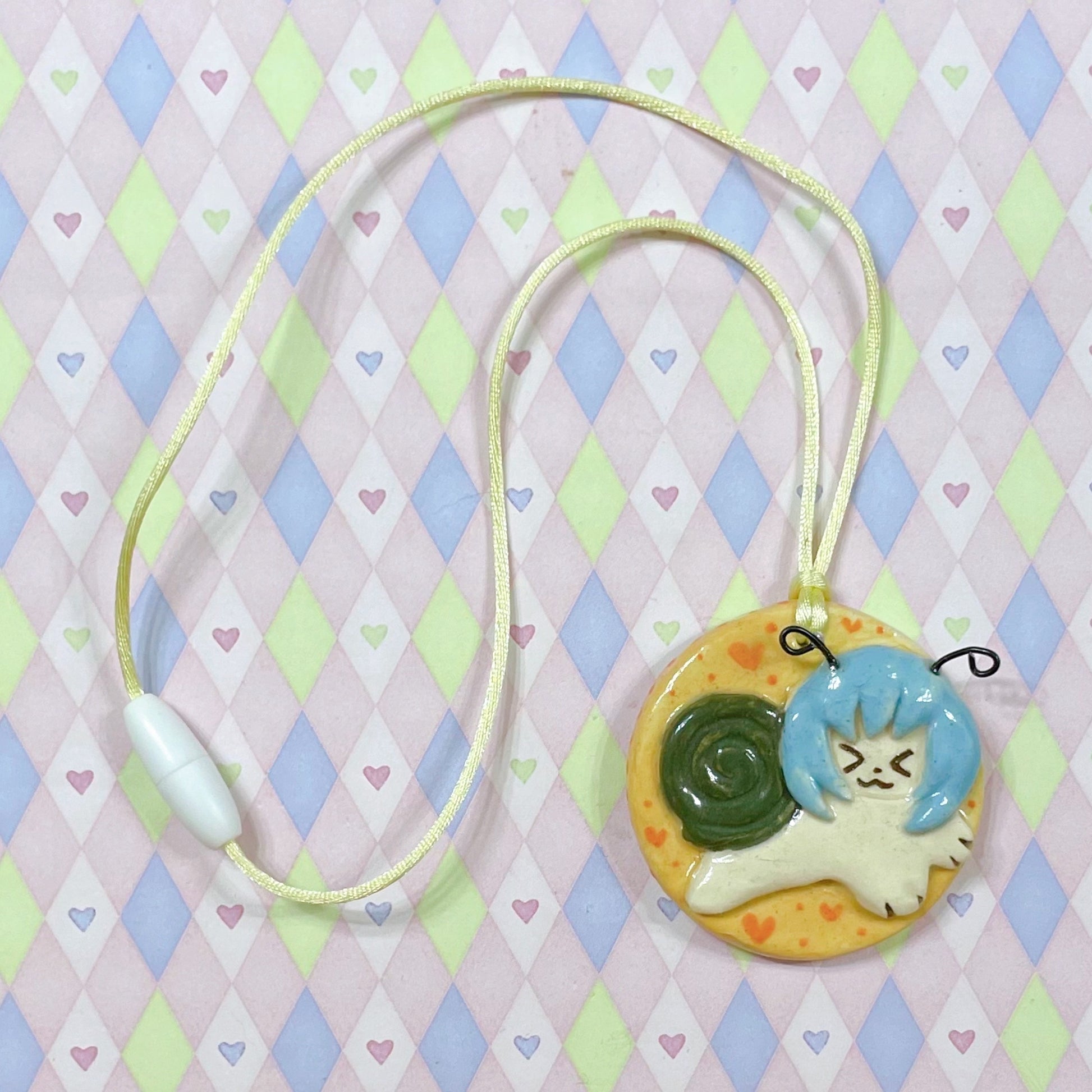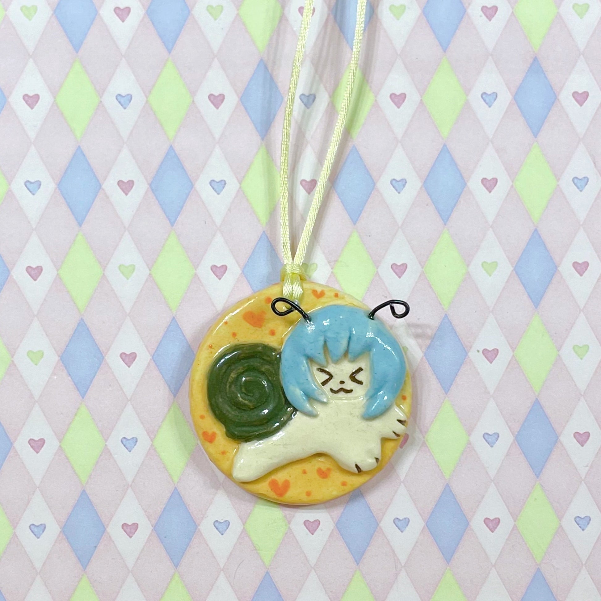 blue & green snailgirl kawaii ceramic stoneware necklace!