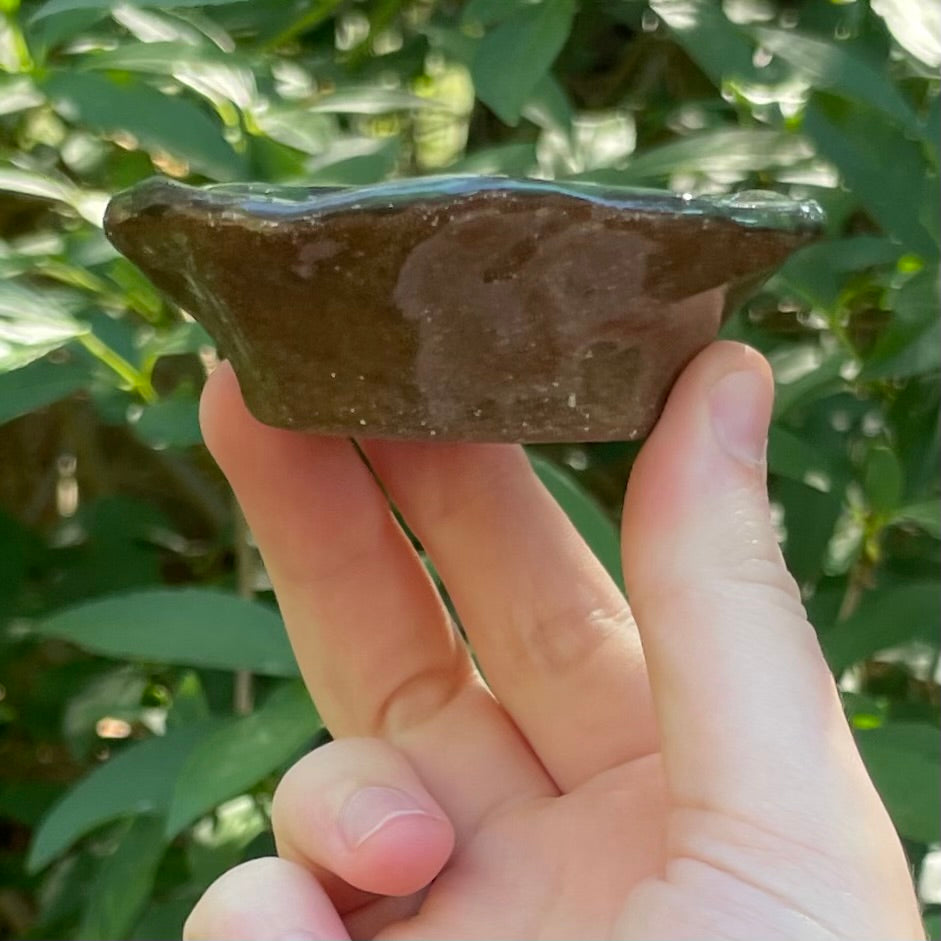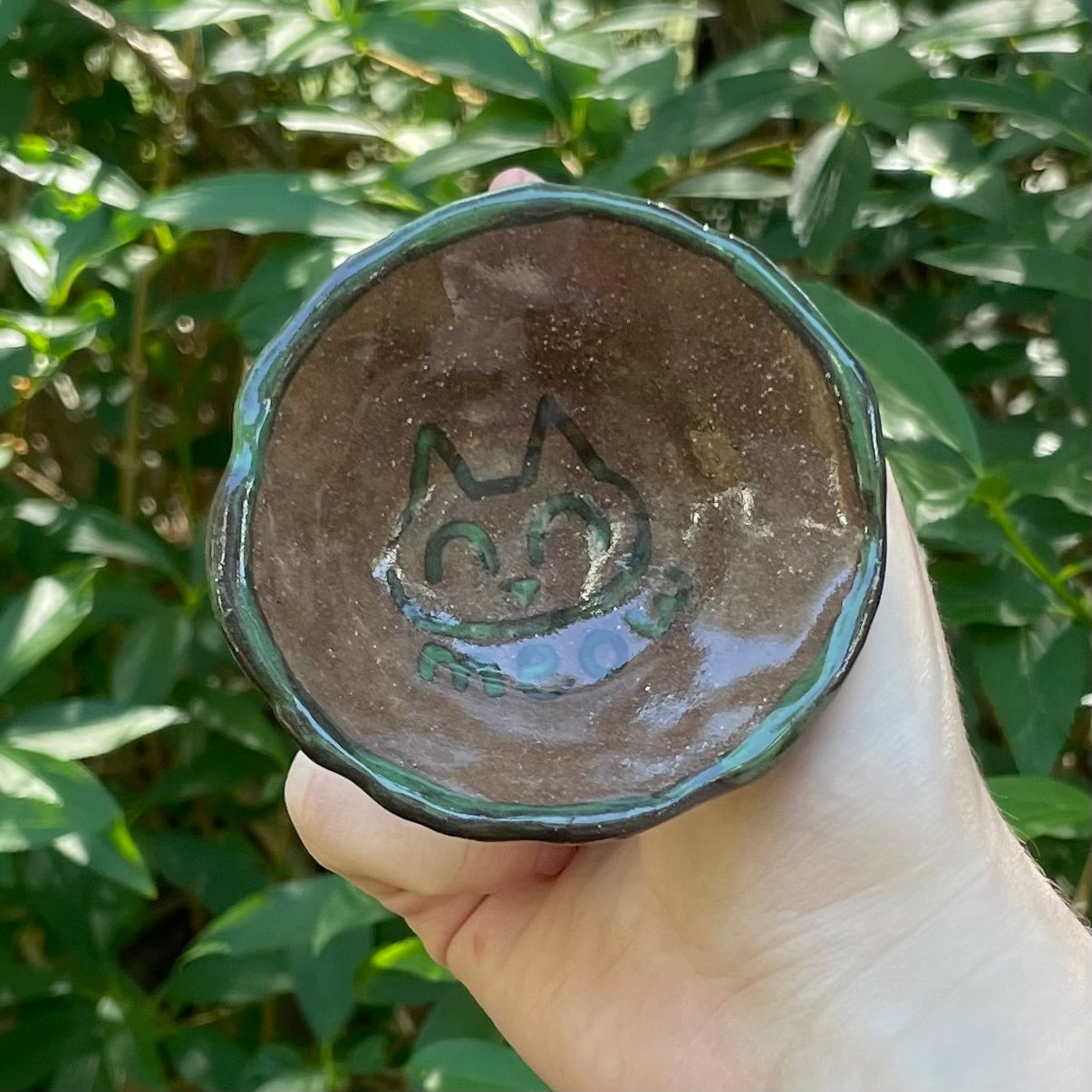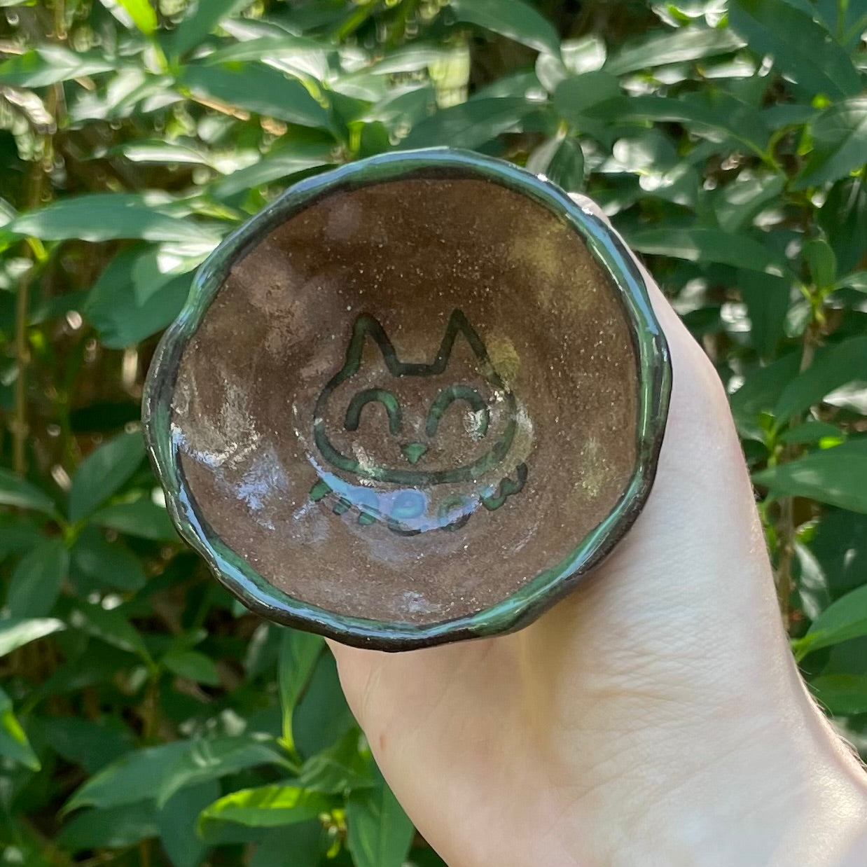 green & brown kitty cat meow handmade small ceramic stoneware dish!