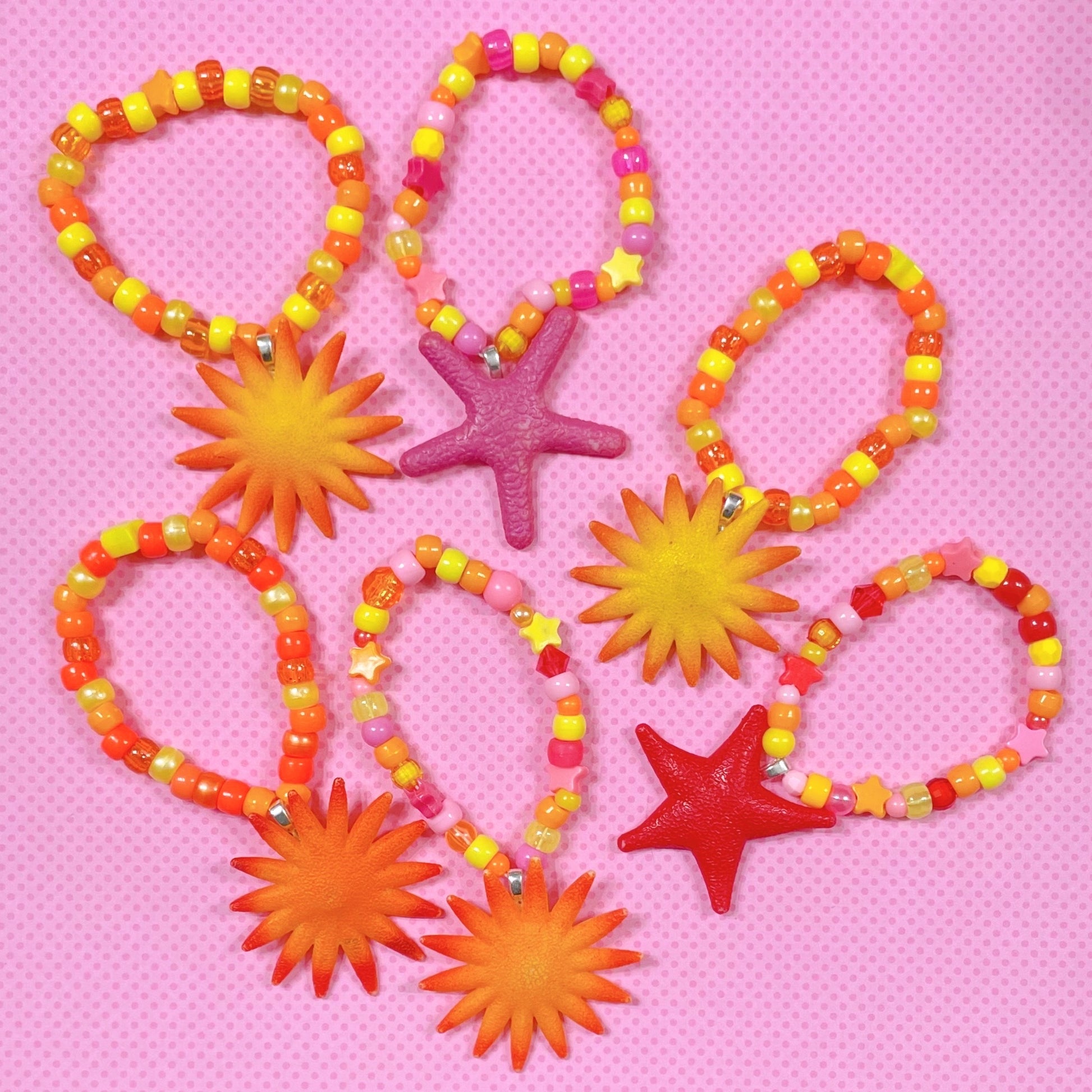orange starfish 6 piece handmade kandi bracelet set!
