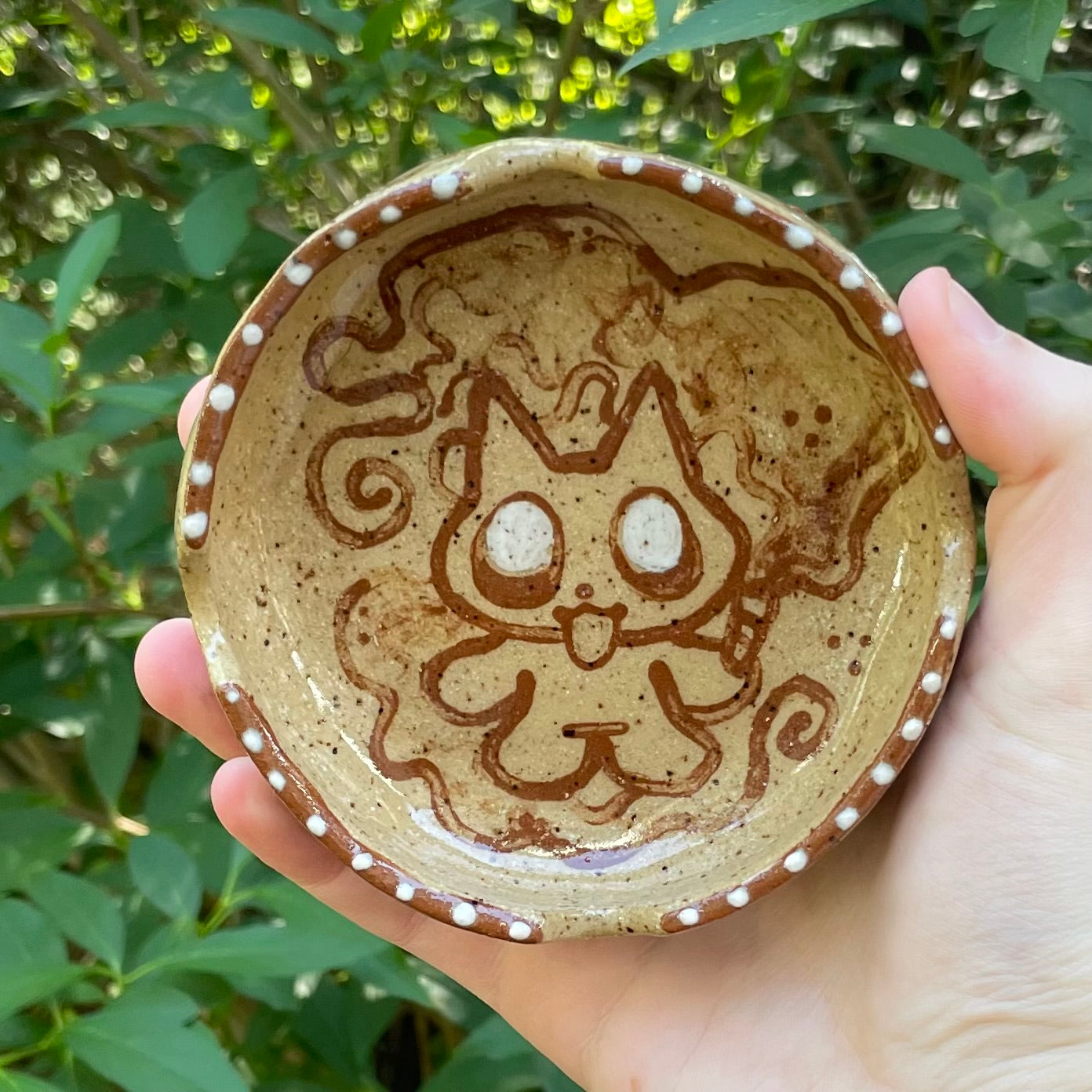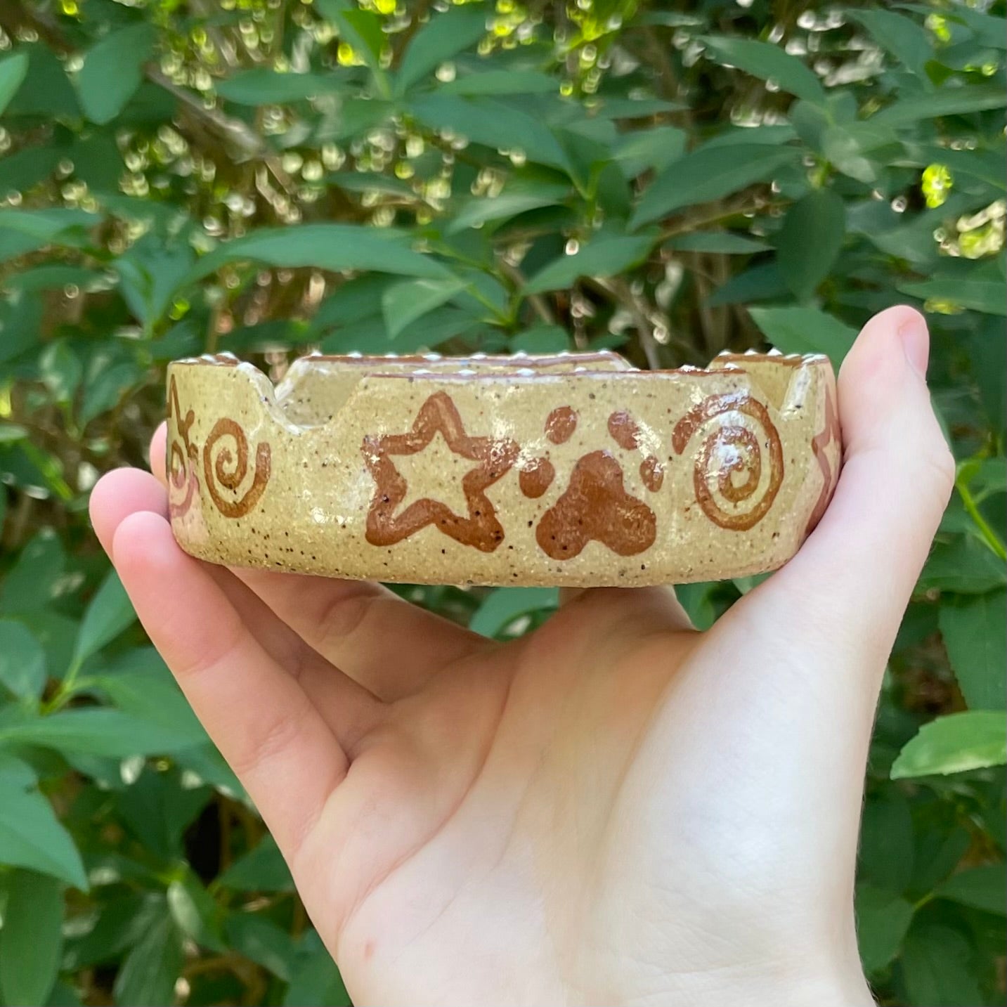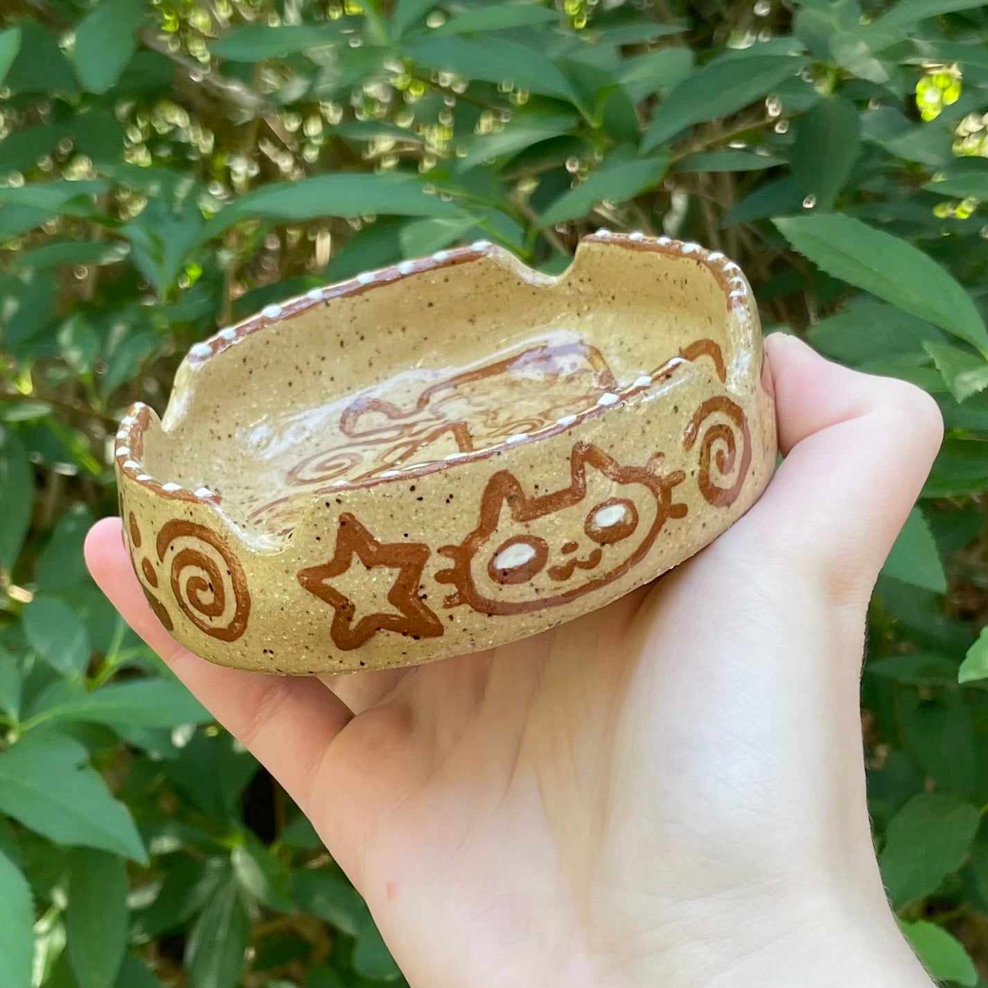 brown & white smoking kitty cat kawaii stoneware ashtray!