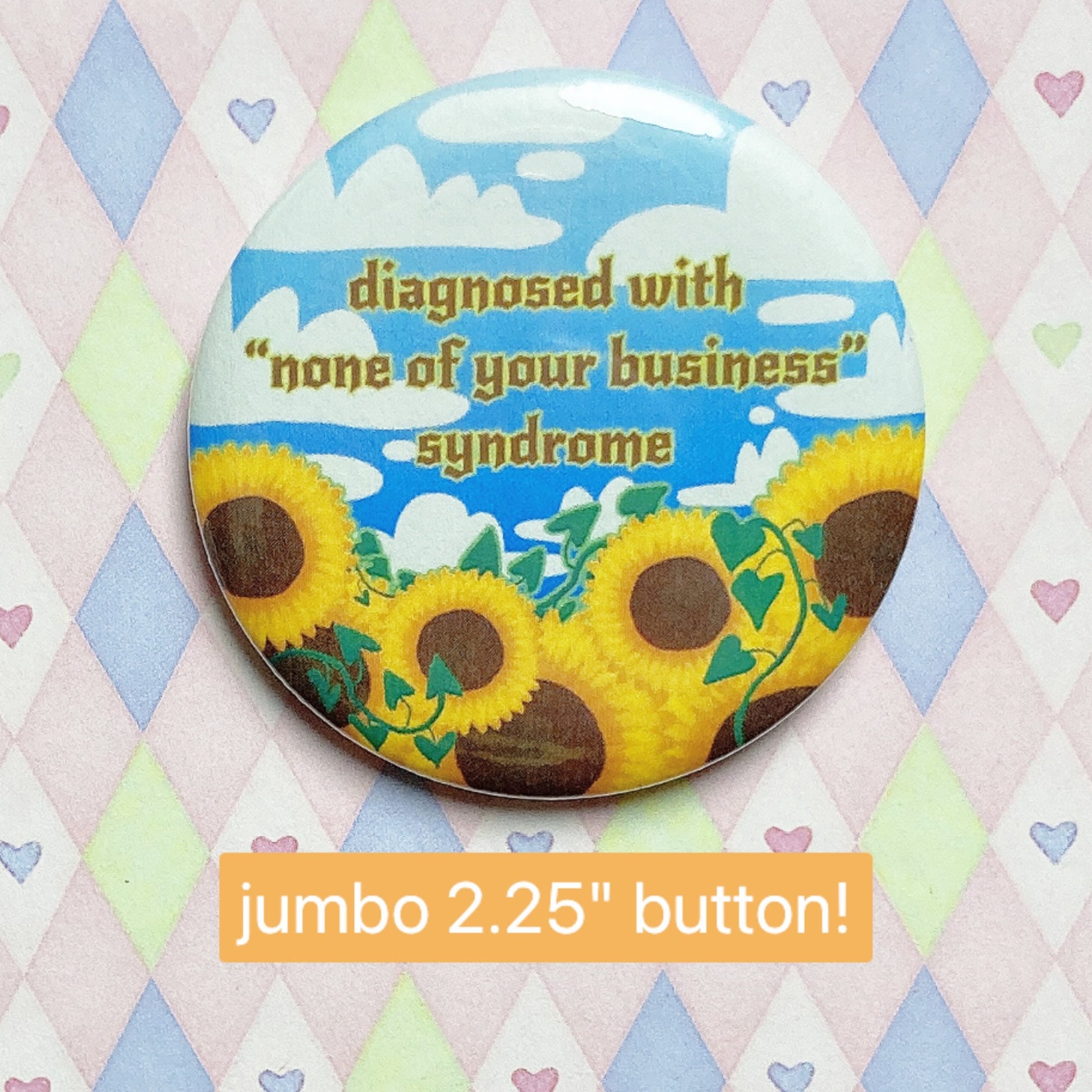 diagnosed with 'none of your business' syndrome disability pride sunflower kawaii cute jumbo button! (2.25")