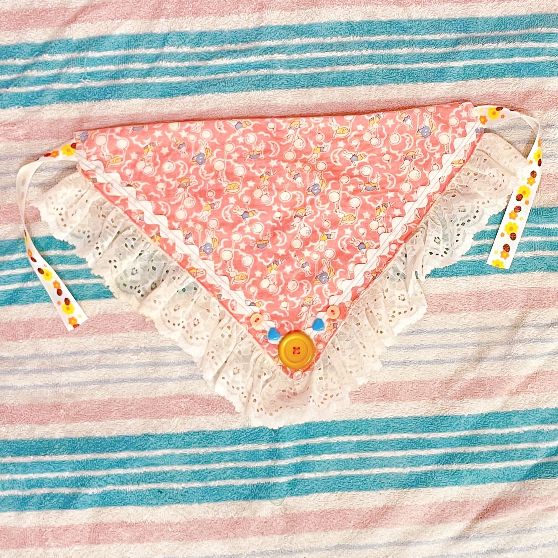 pink yellow rabbit moon kawaii lace fabric bandana!