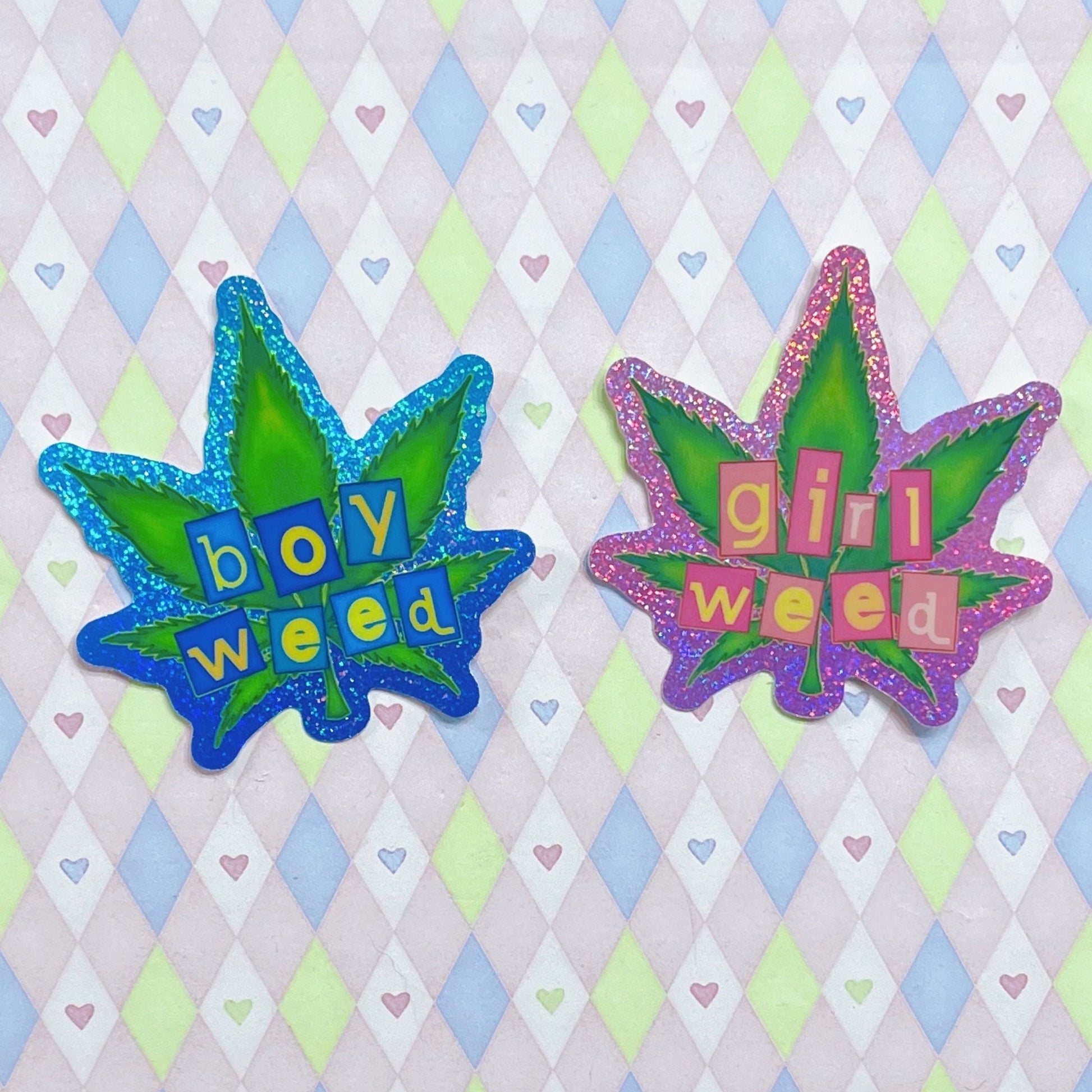 girl boy stoner stash holographic glitter stickers! (2.5")