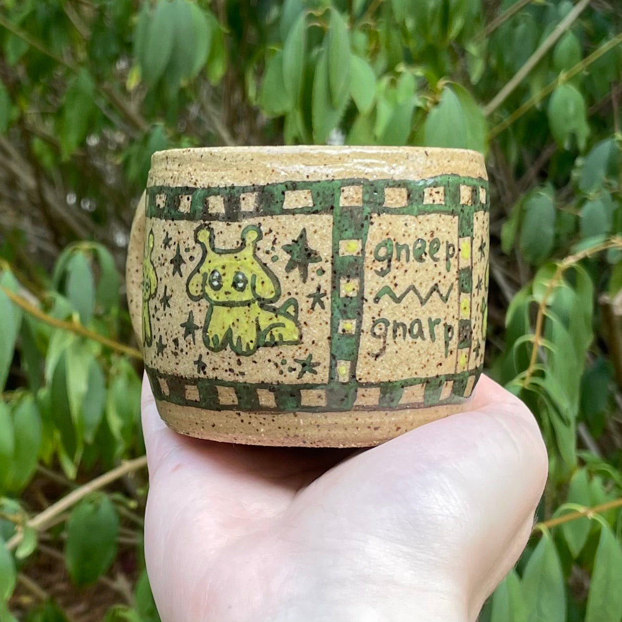 gneep gnarp green alien puppies handmade ceramic stoneware mug!