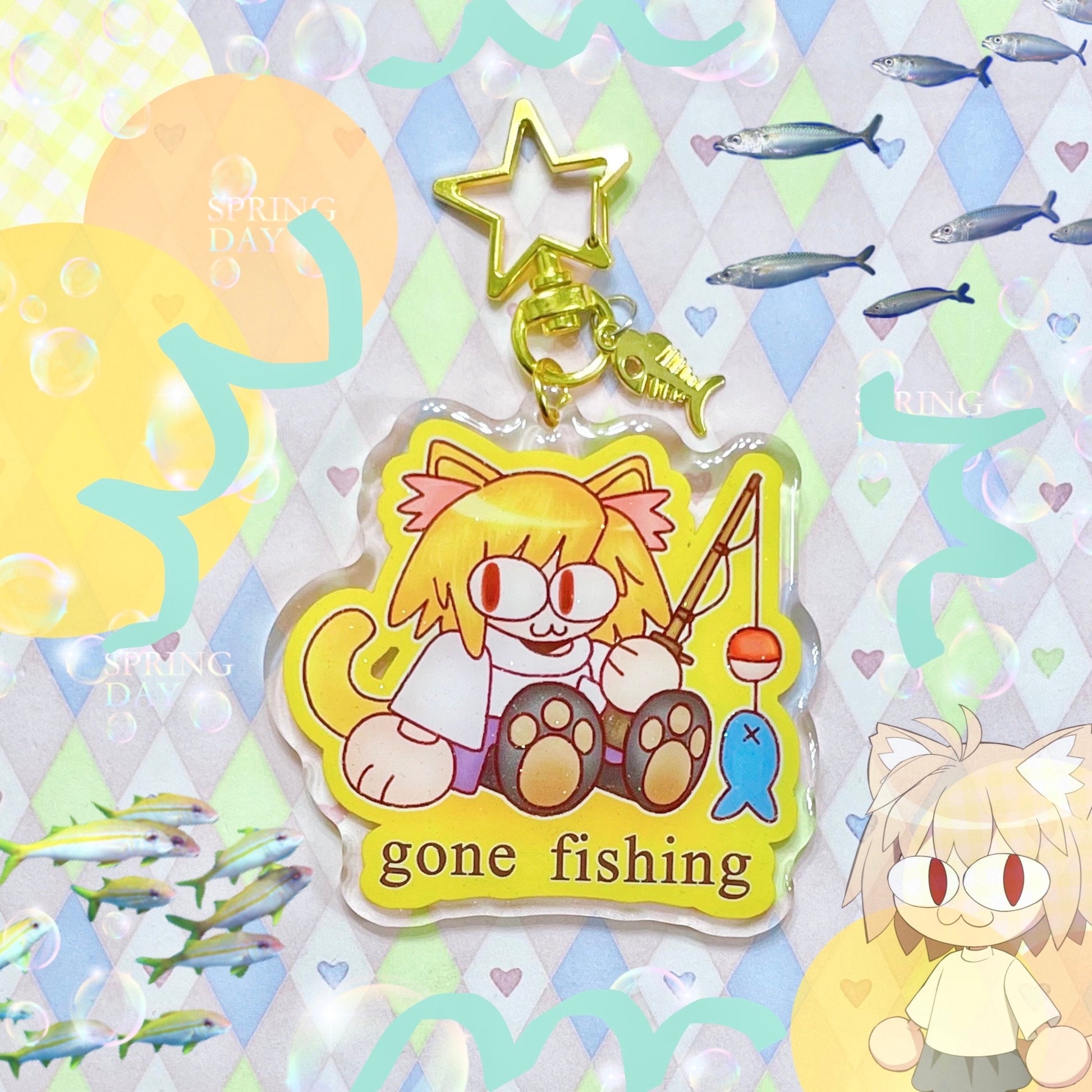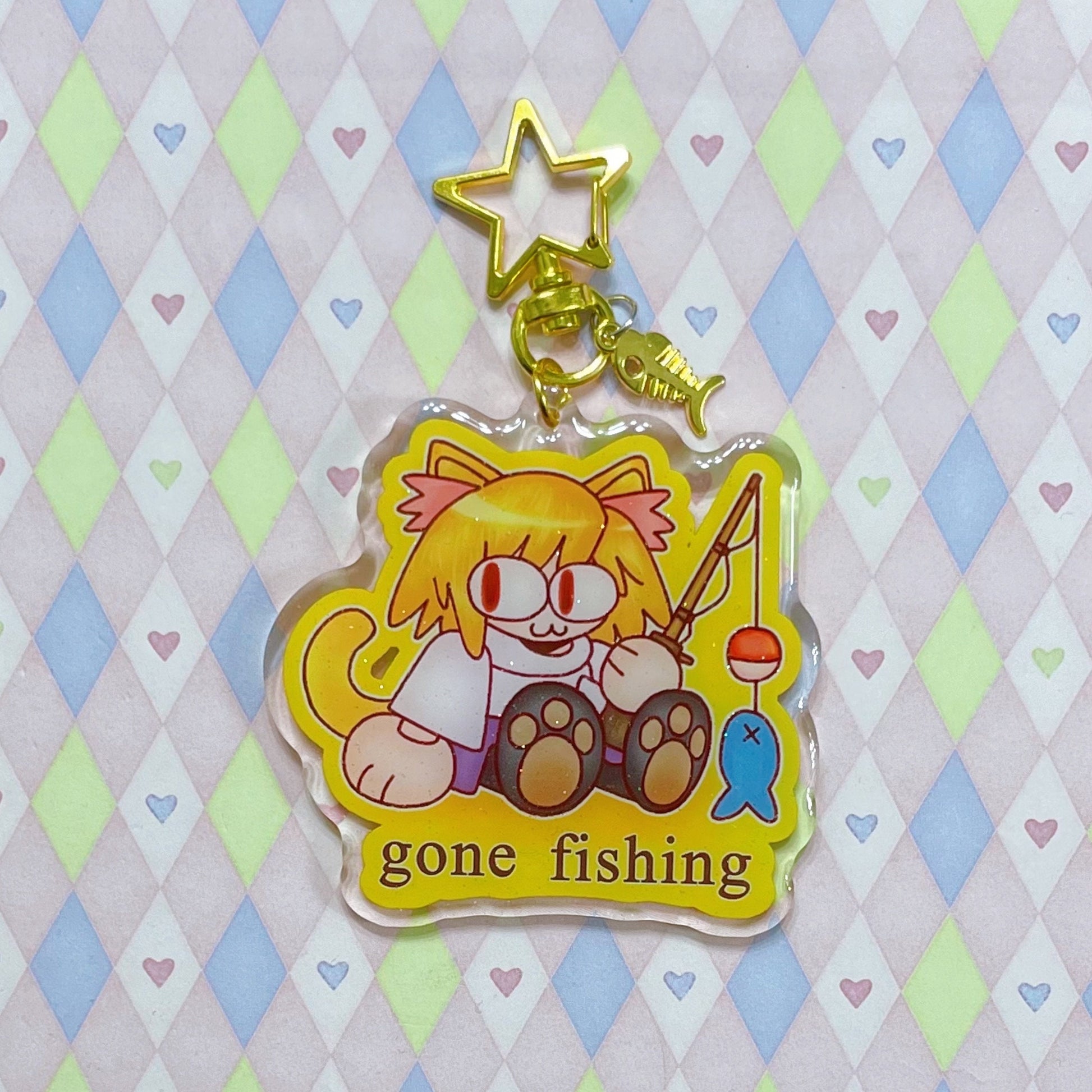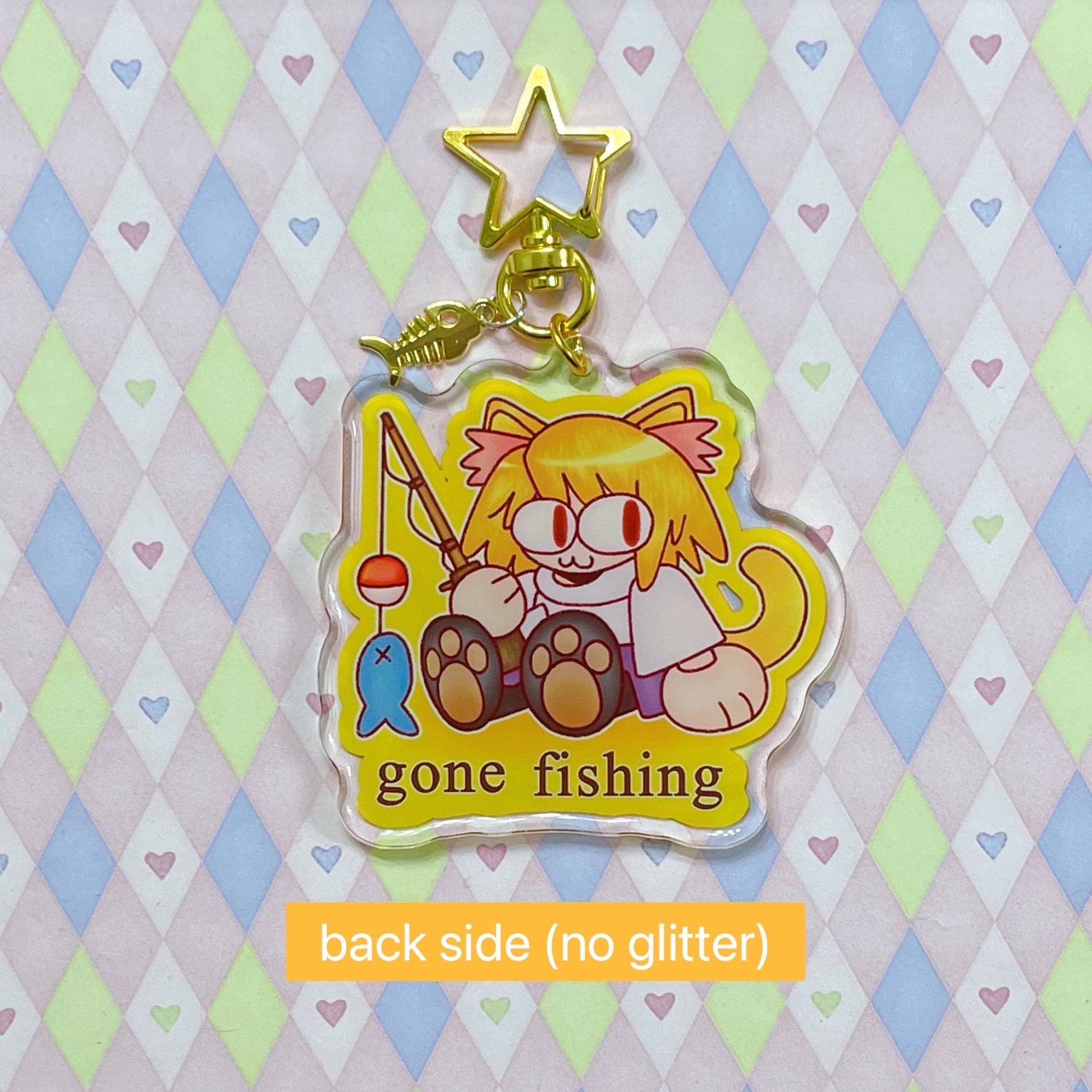 gone fishing neco arc type moon double sided glitter epoxy acrylic keychain! (3")