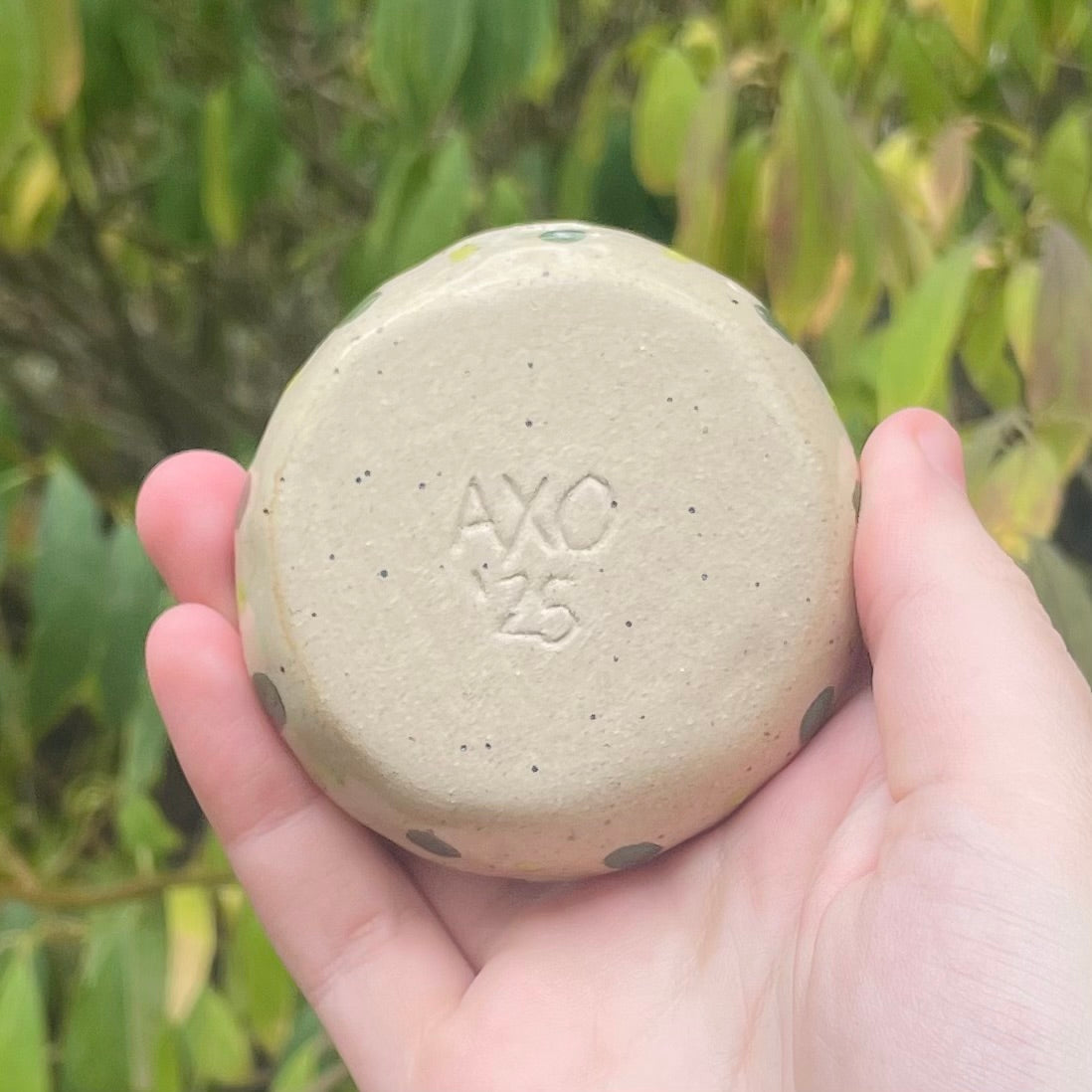 measures 3" in diameter. the perfect size for a few tiny trinkets~
