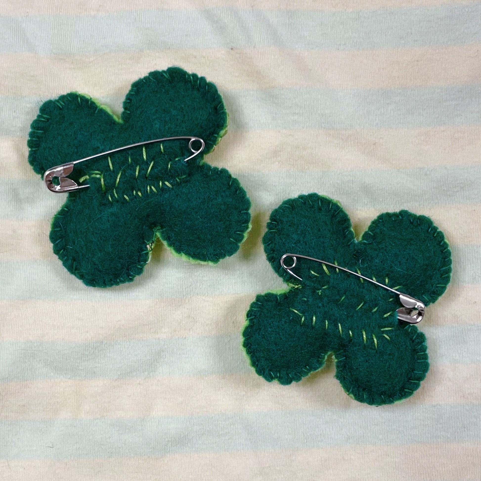 handsewn felt and secondhand scrap fabric clover brooch made with love <3
