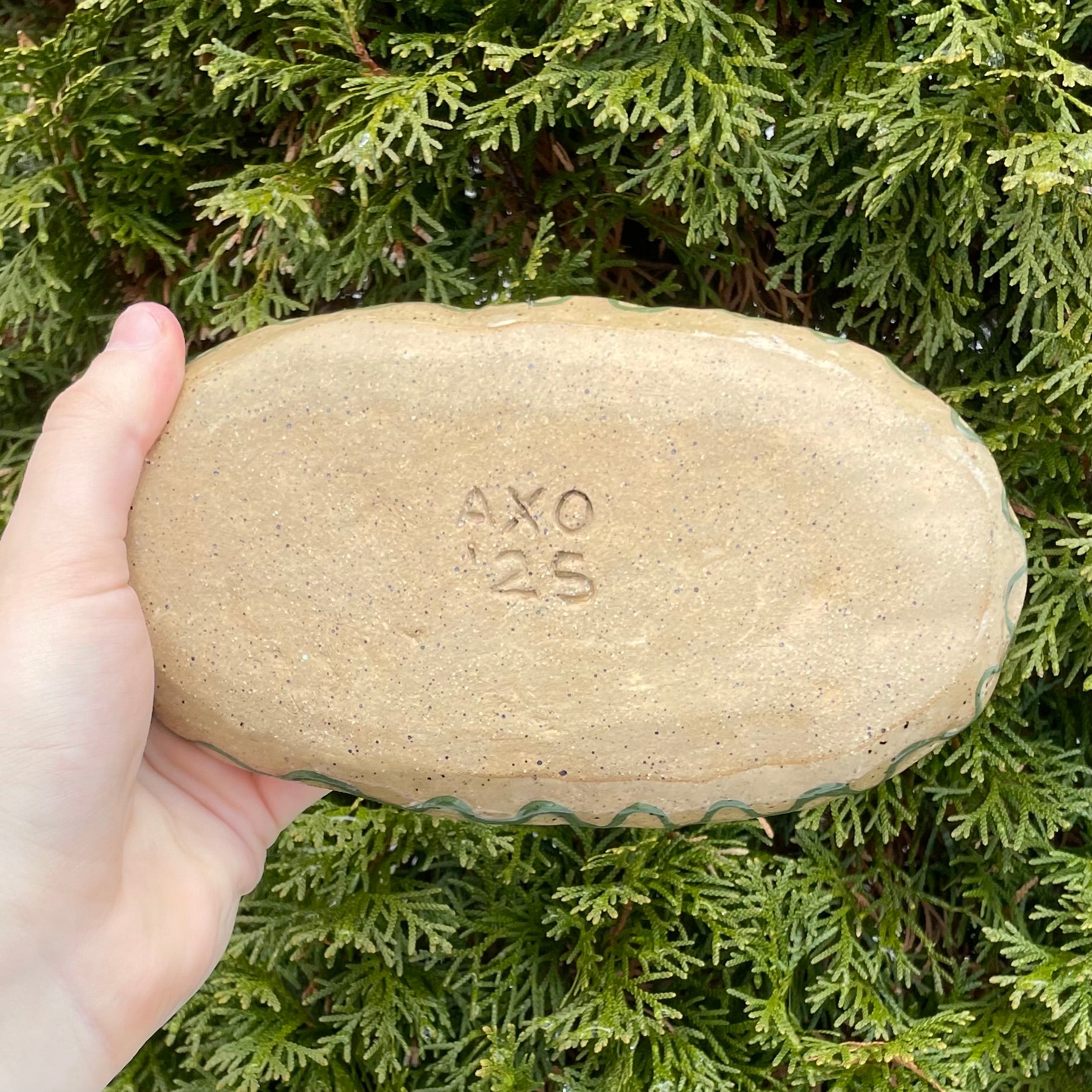 green pink wolf oval handmade ceramic stoneware bowl!