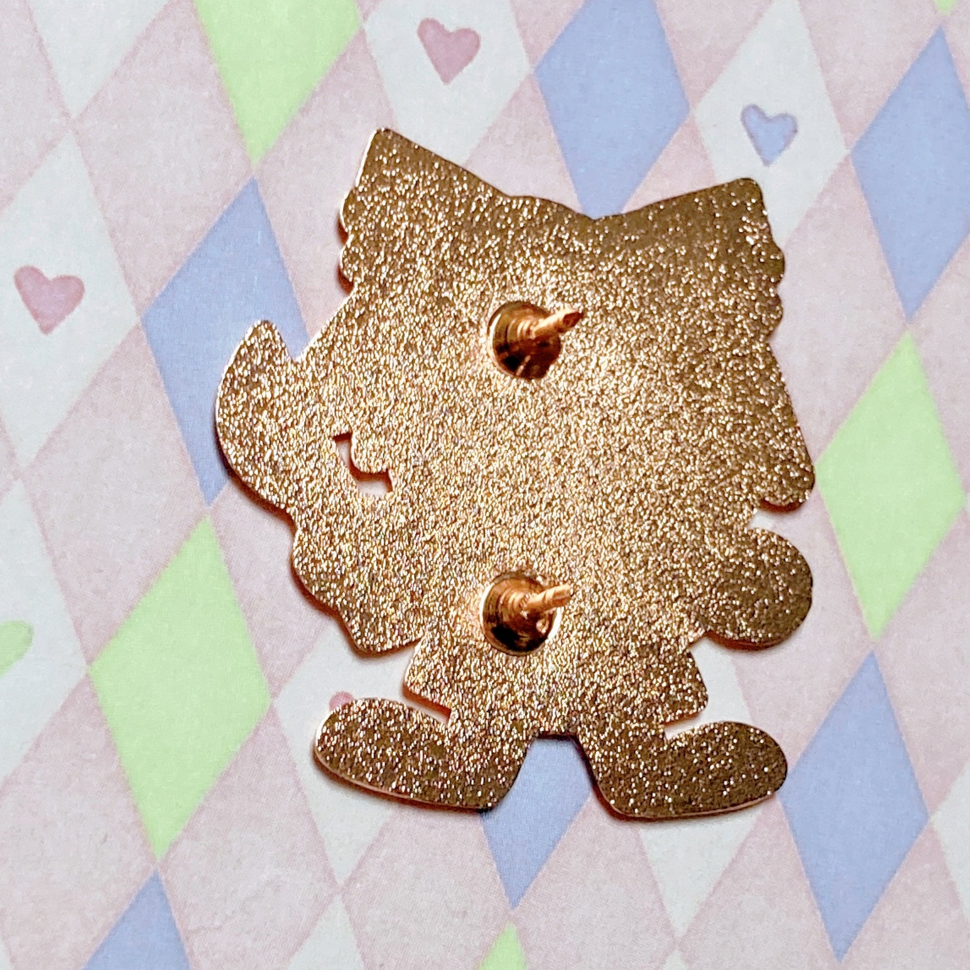 everyone's favorite neco arc, shrunk down into a 1.5" wide, hard enamel pin with copper plating and a glittery knife ^__^)/