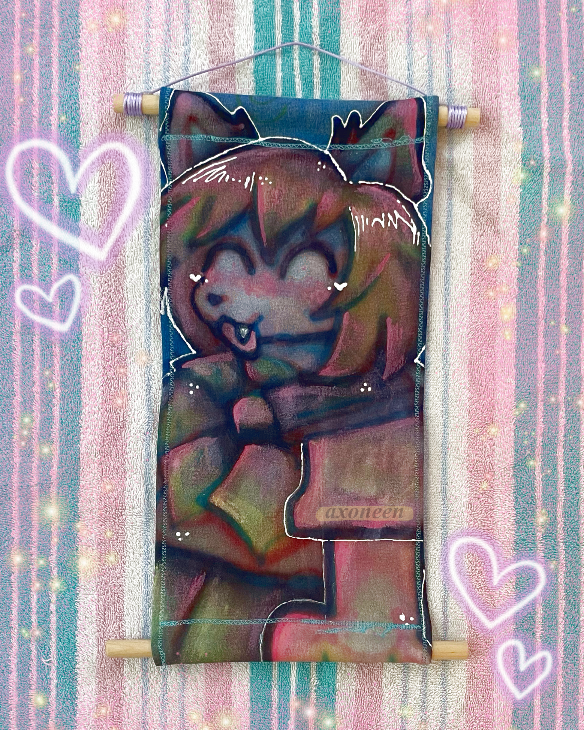 furry anime girl kawaii airbrush fabric wall scroll tapestry!