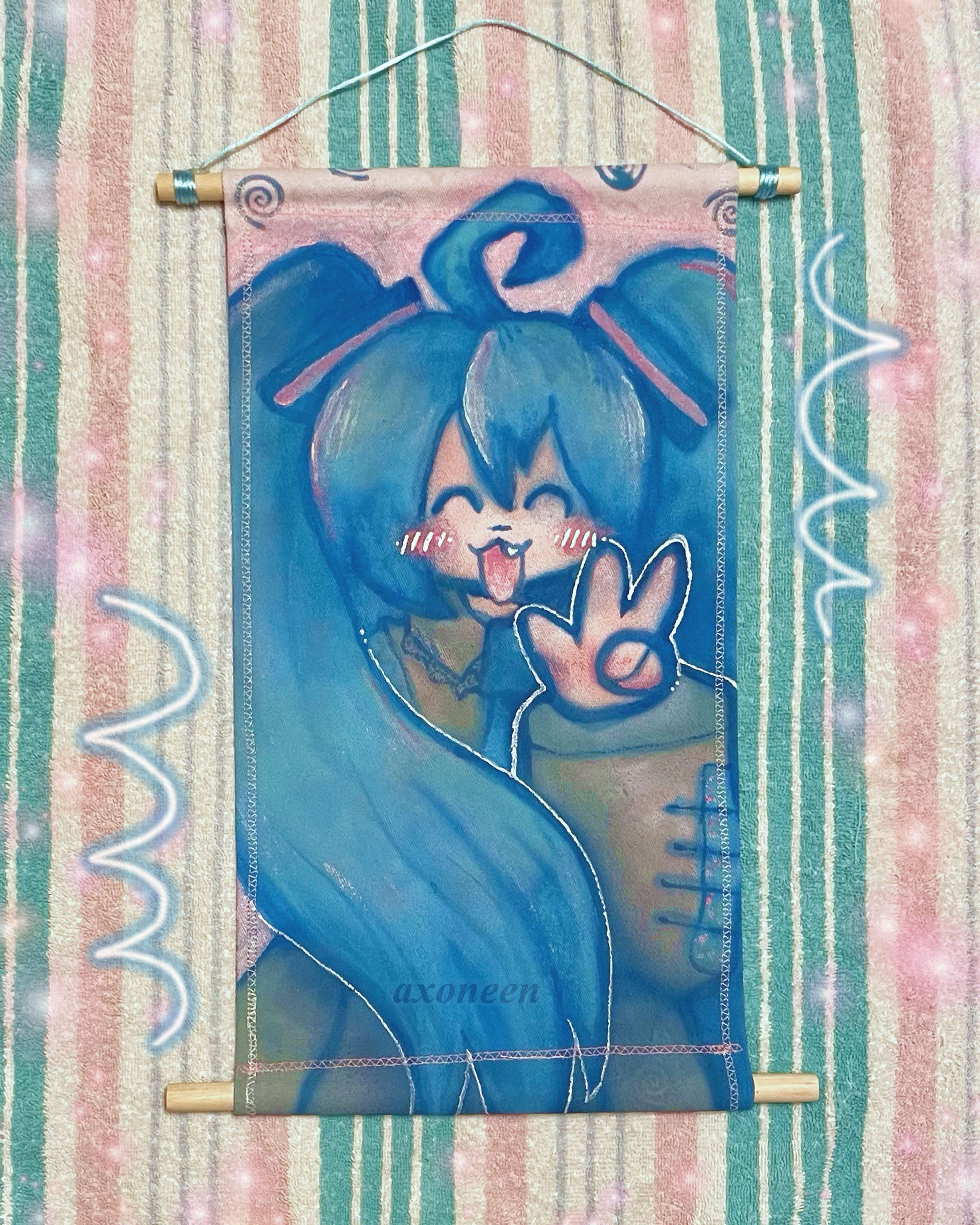 hatsune miku kawaii airbrush fabric wall scroll tapestry!