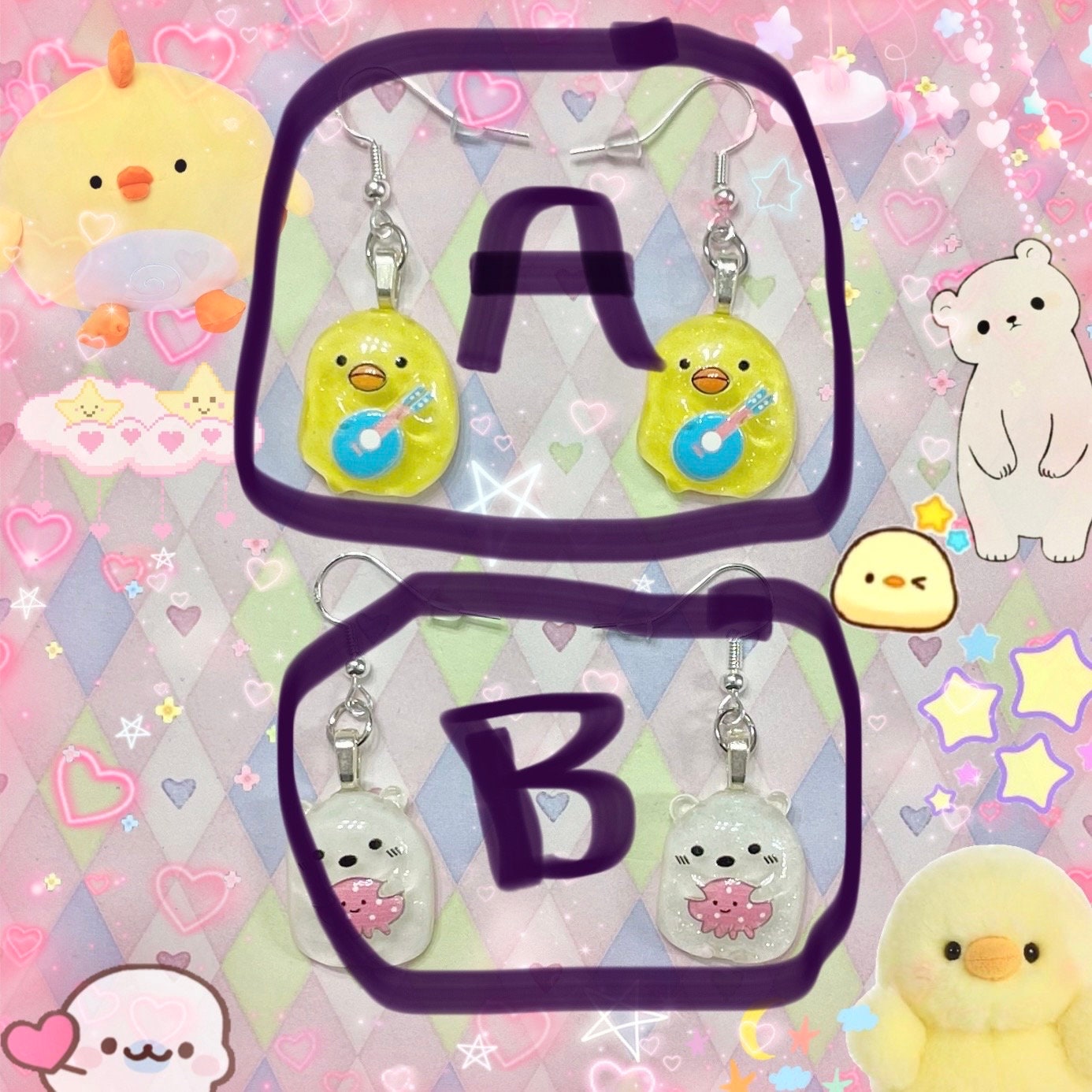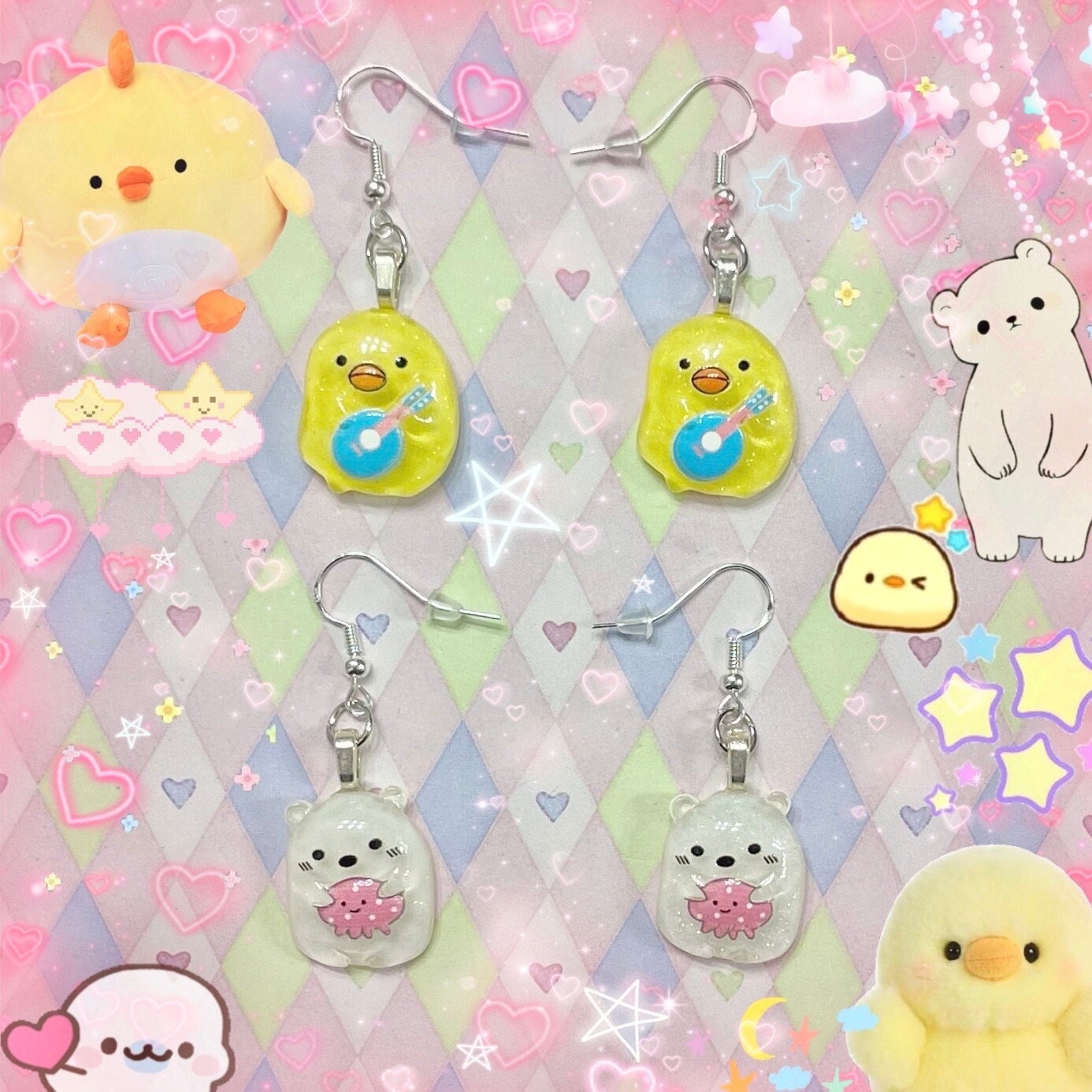 kawaii bear duck miniature pastel decora glitter kidcore cabochon dangle earrings!