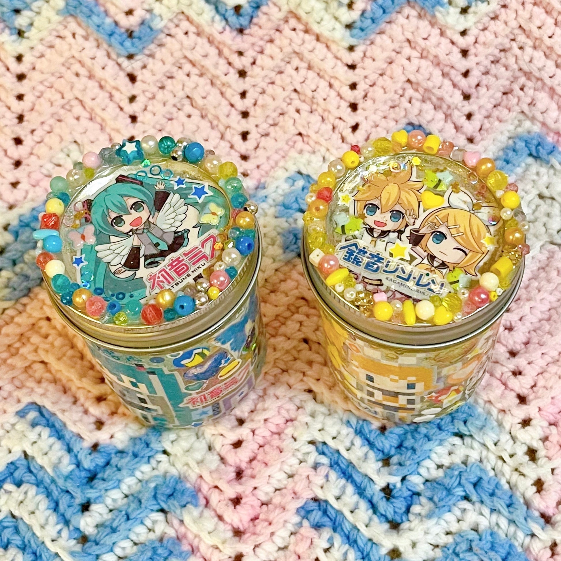 vocaloid kawaii sticker glitter bead decoden rainbow collage glass stash mason jars! (8oz.)