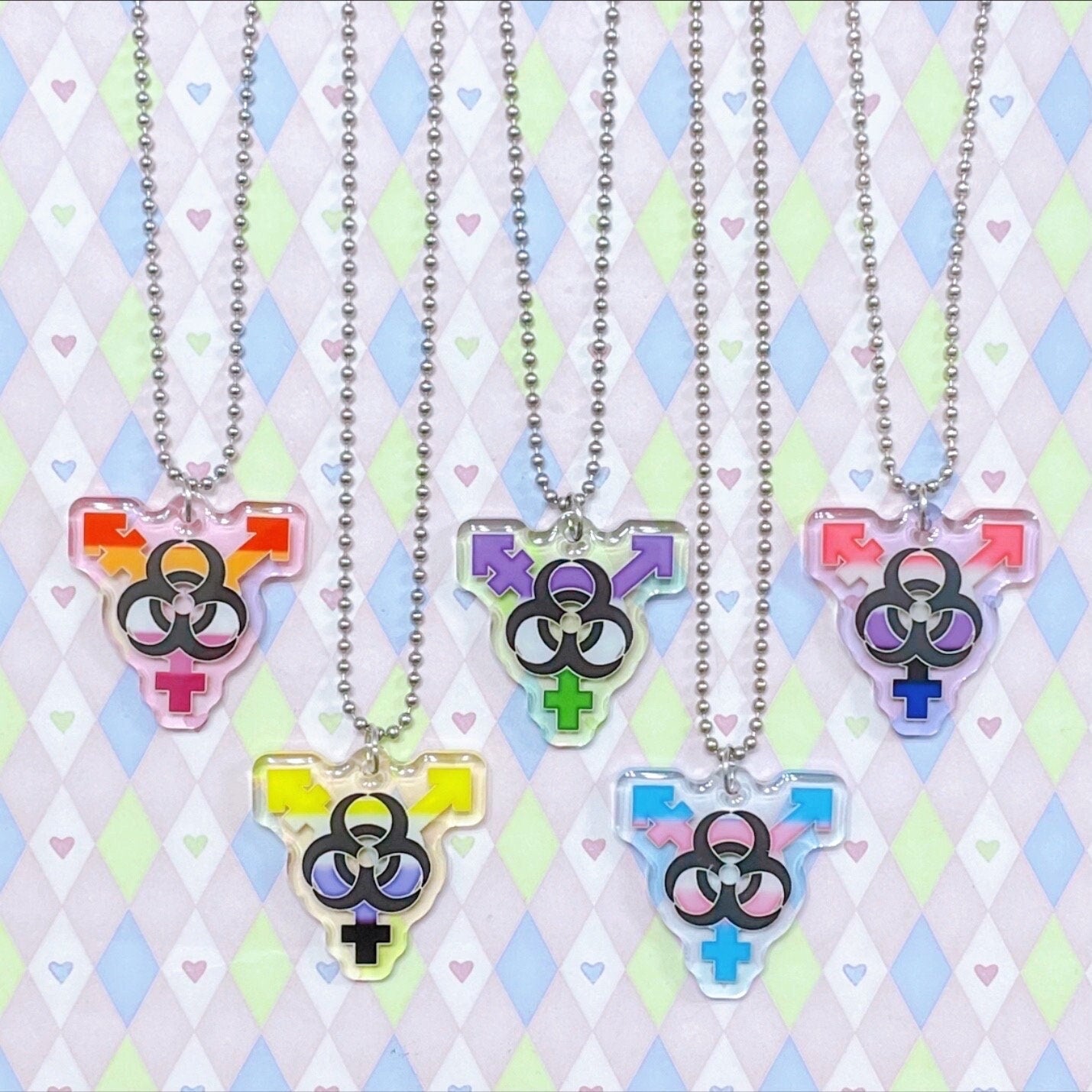 lgbt punk transgender lesbian biohazard genderqueer genderfluid nonbinary pride cute acrylic charm ballchain necklaces!
