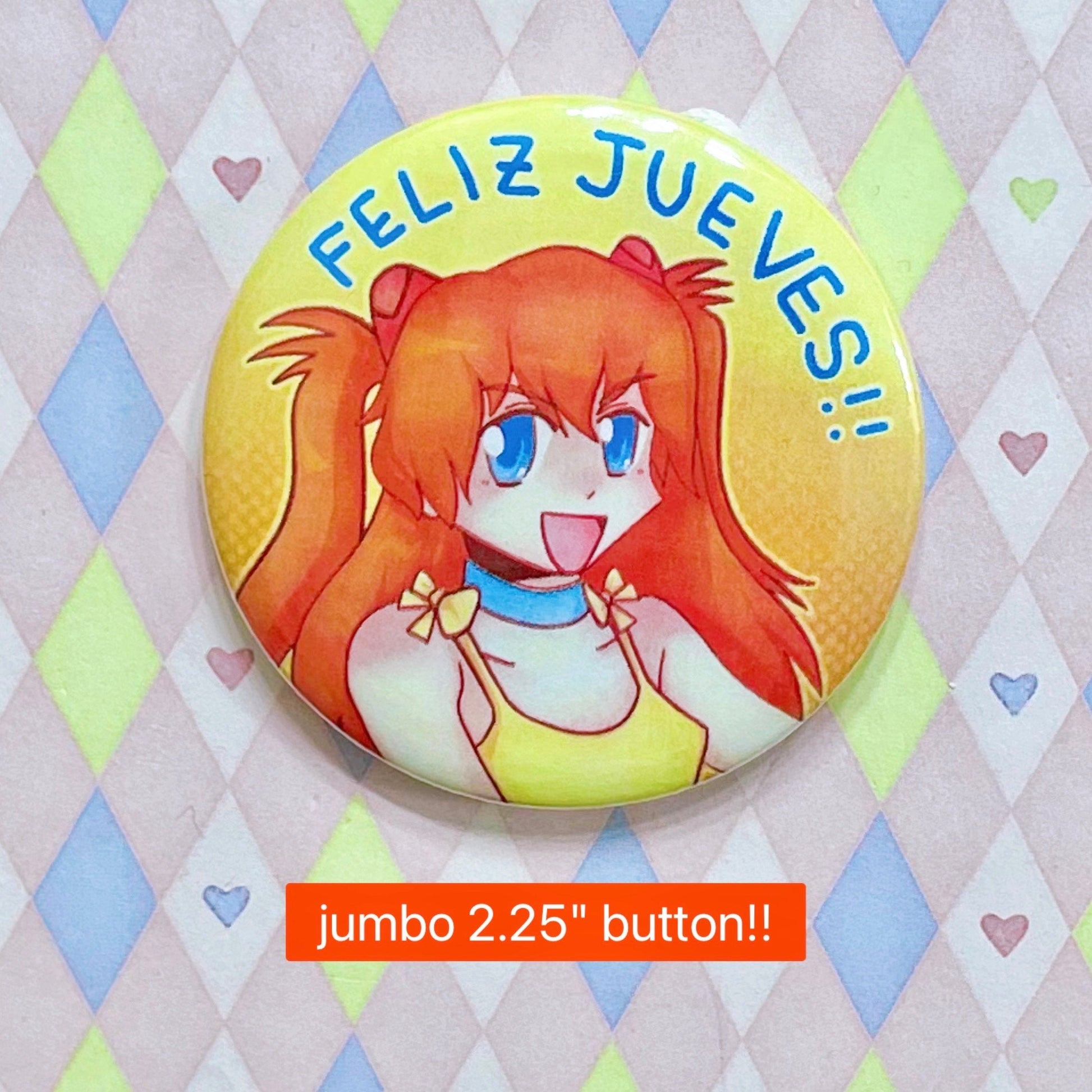 neon genesis evangelion asuka langley 'feliz jueves' meme jumbo button! (2.25")