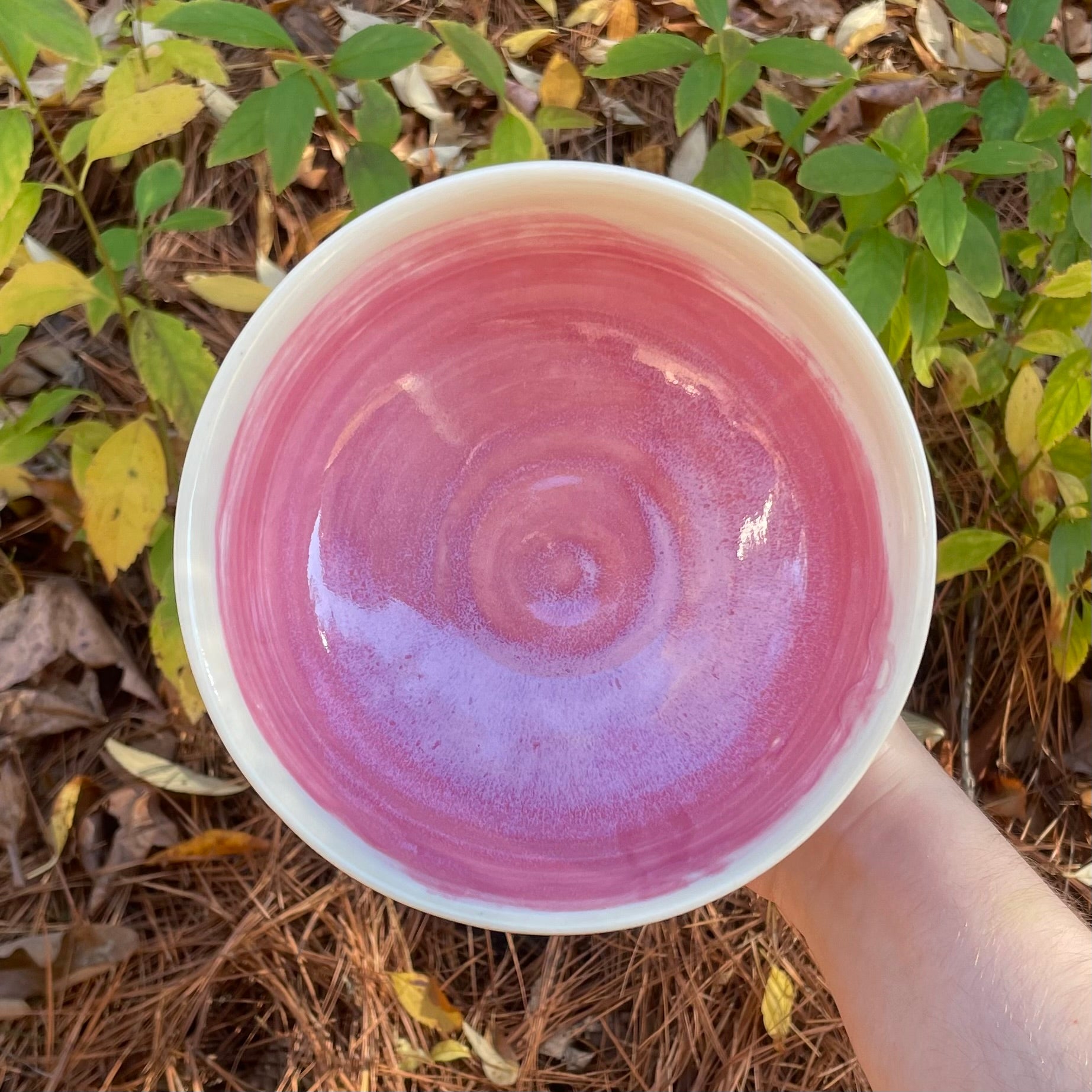 pink red puppy kitten wheel thrown ceramic stoneware bowl!