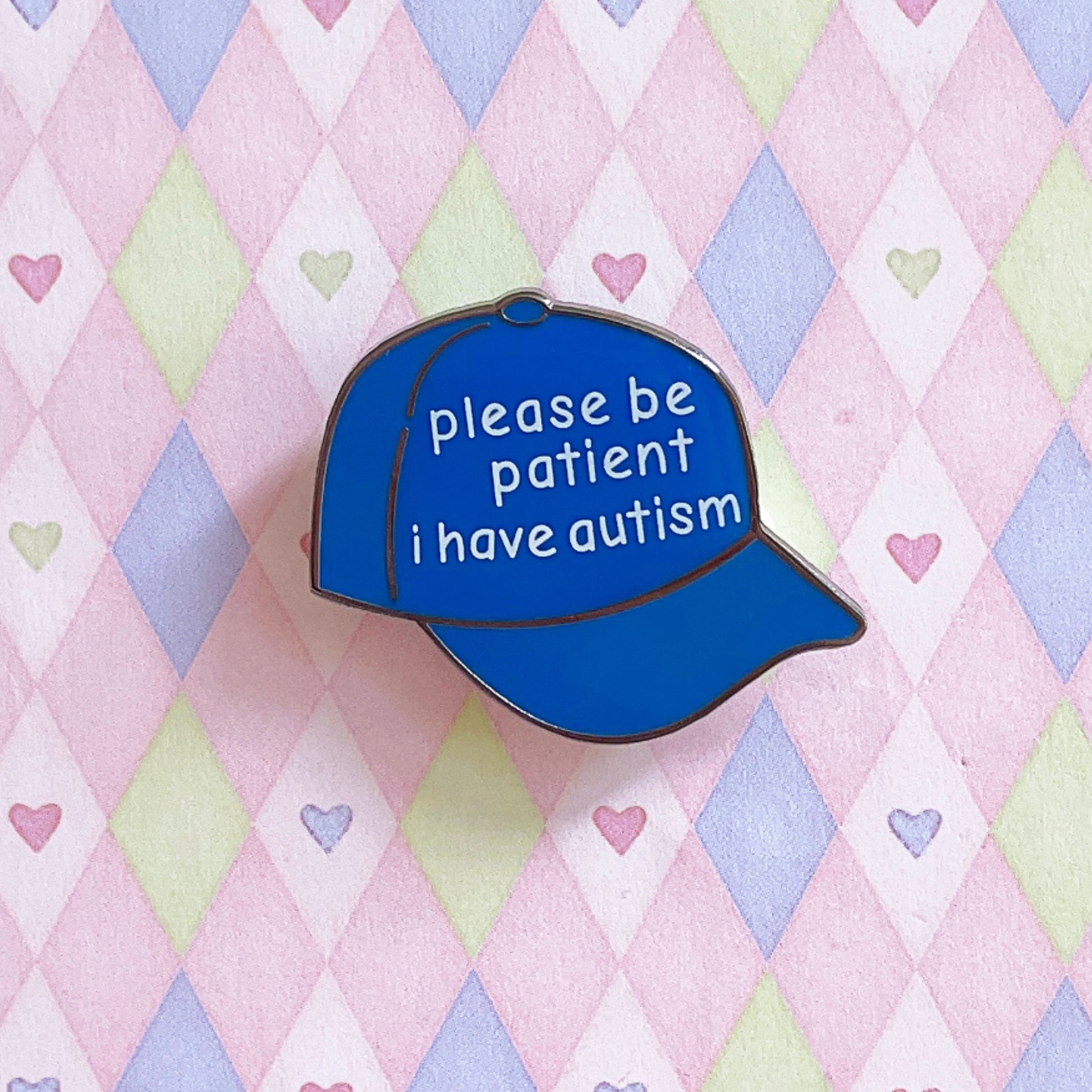 "please be patient i have autism" blue hat meme enamel pin! (1.5")