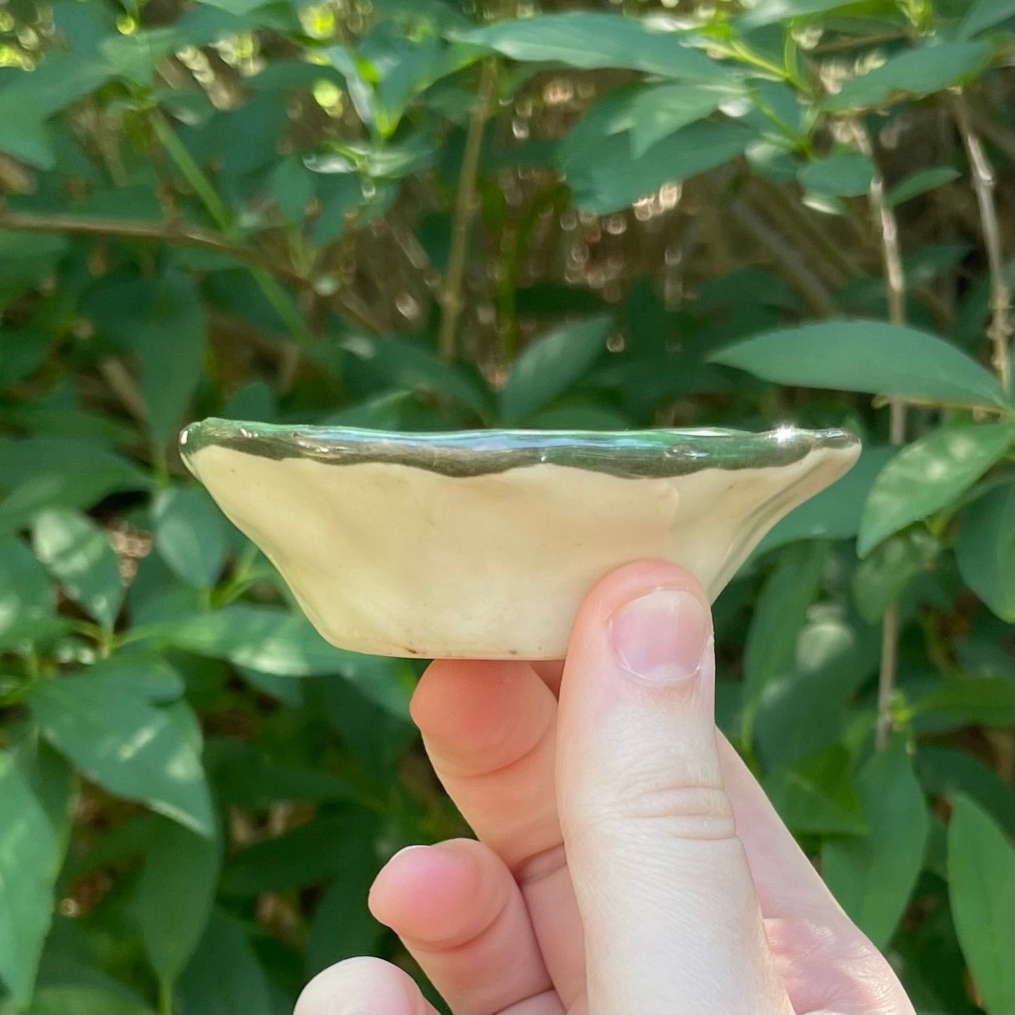 measures 3" in diameter. the perfect size for dipping sauce, coins, beads, or a few tiny trinkets~