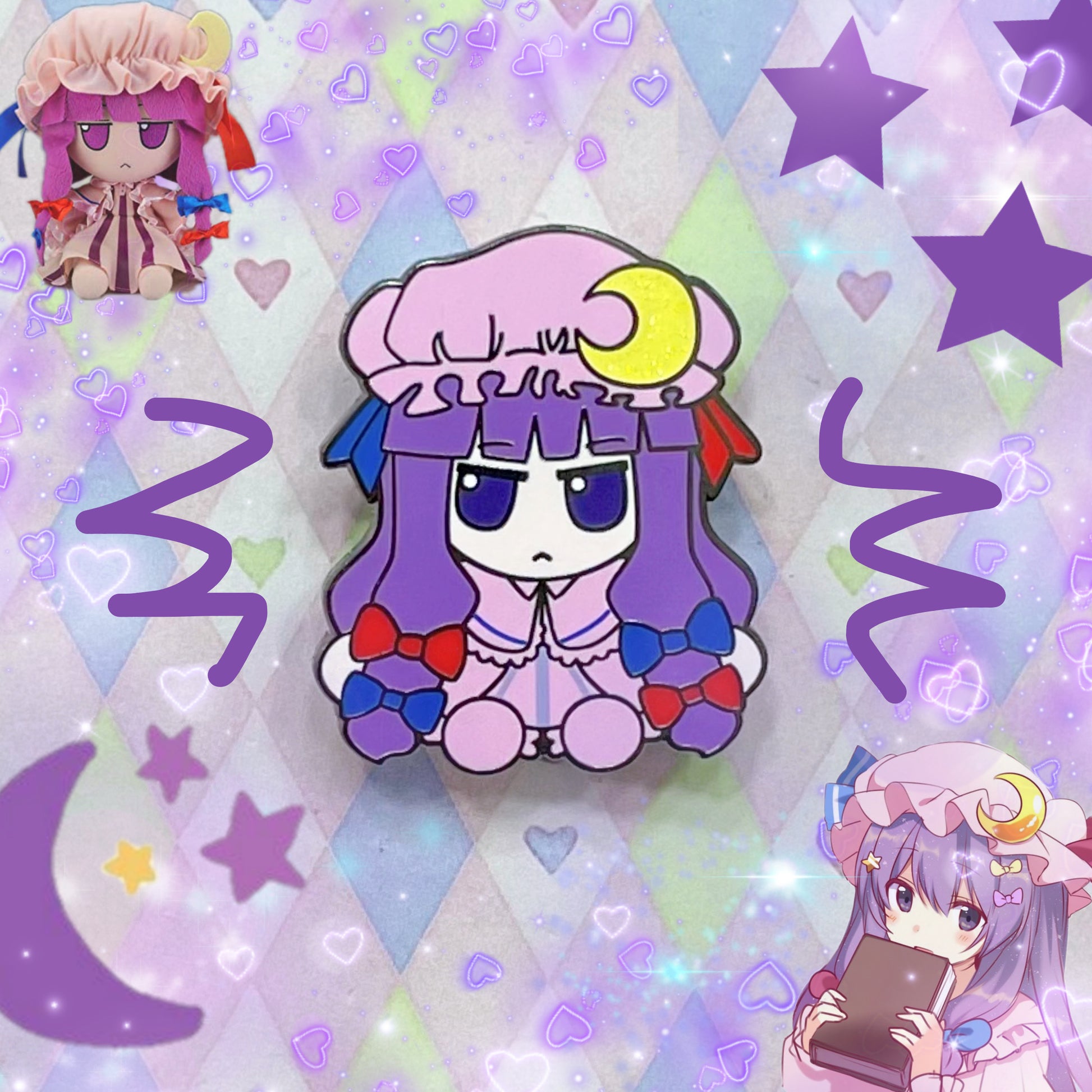 touhou fumofumo patchouli knowledge anime silver glitter enamel pin! (1.5")