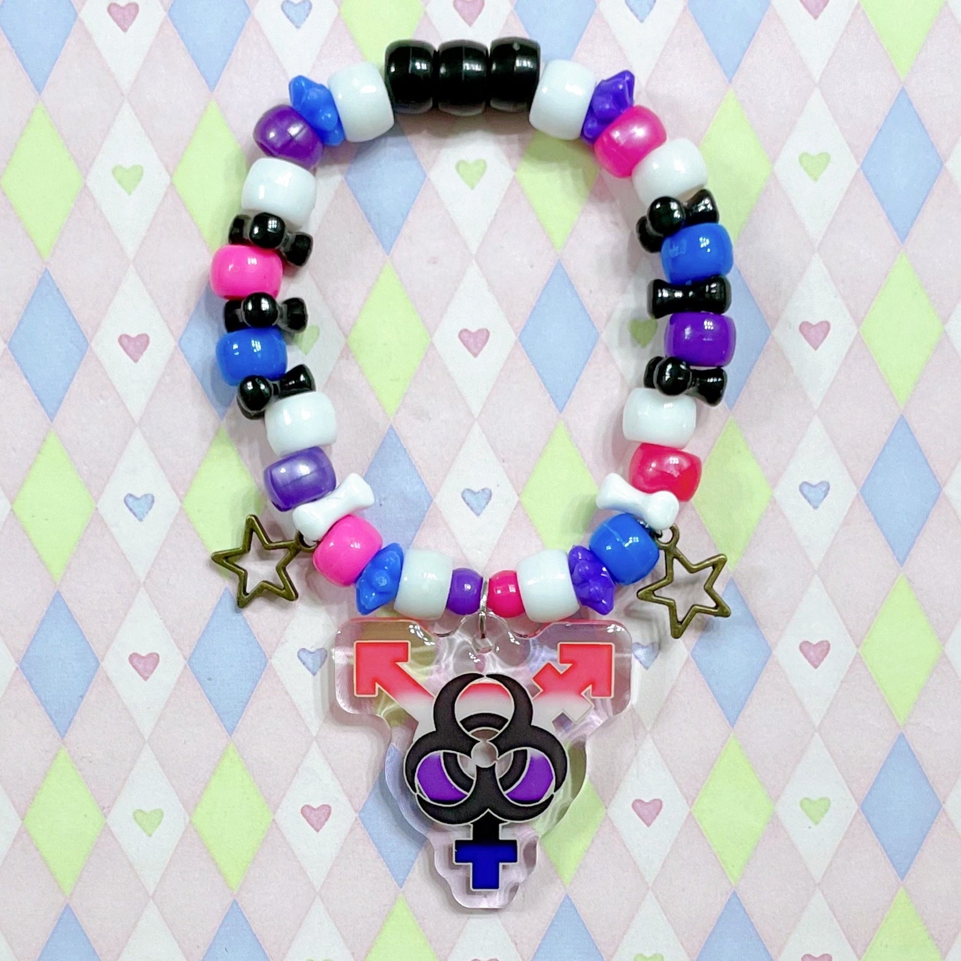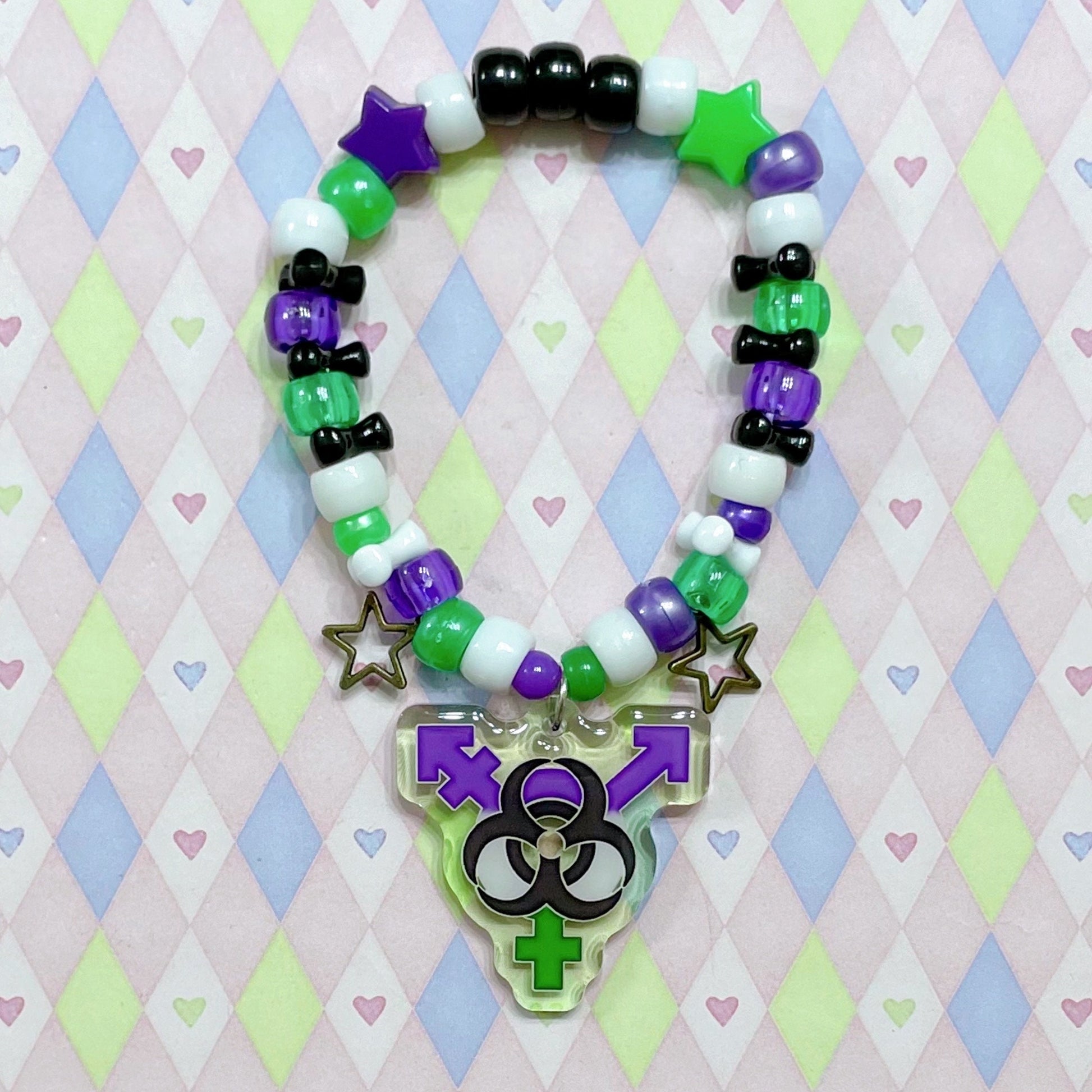 trans pride biohazard genderqueer genderfluid nonbinary lgbt punk handmade kawaii kidcore kandi bracelet!