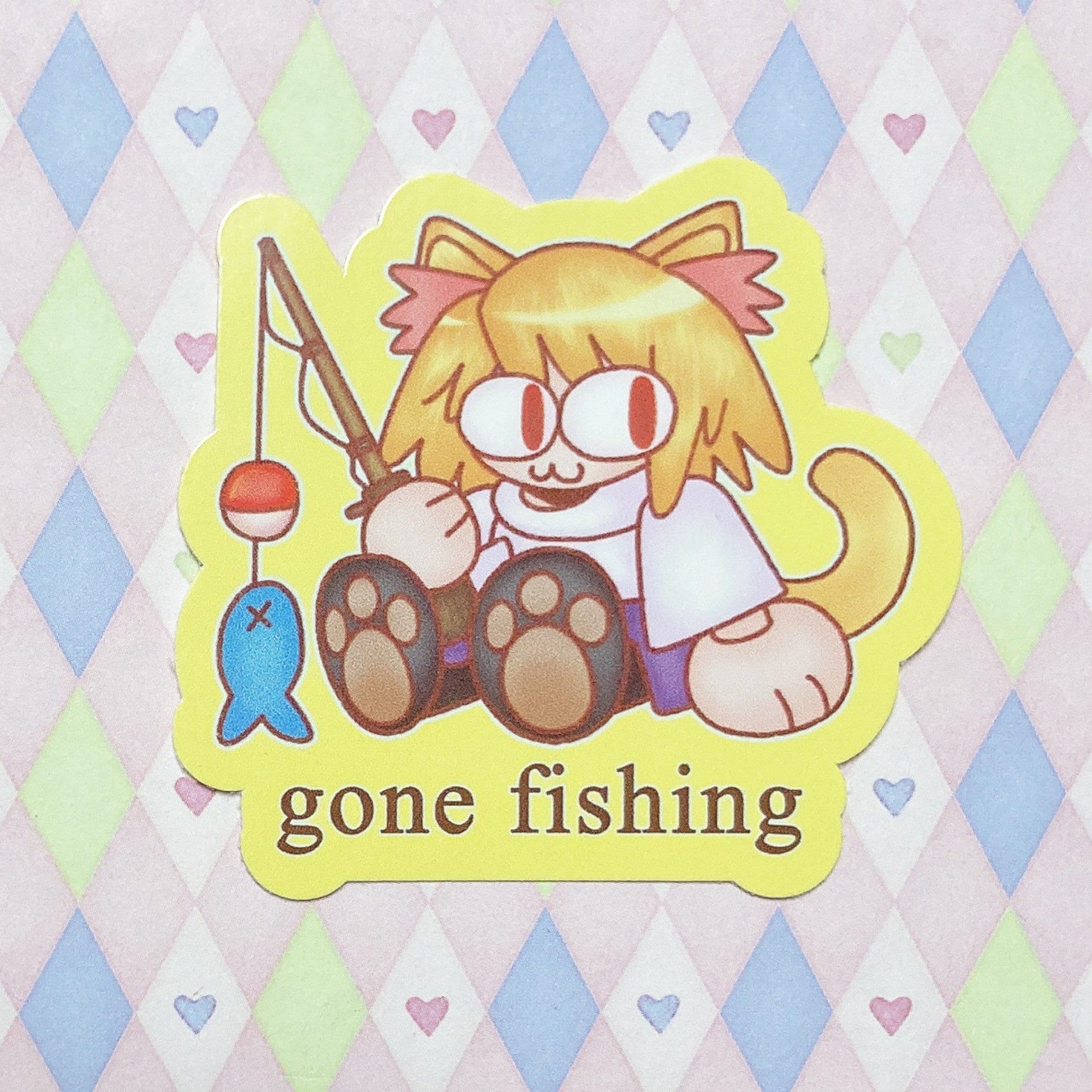 type moon neco arc 'gone fishing' meme sticker! (3")