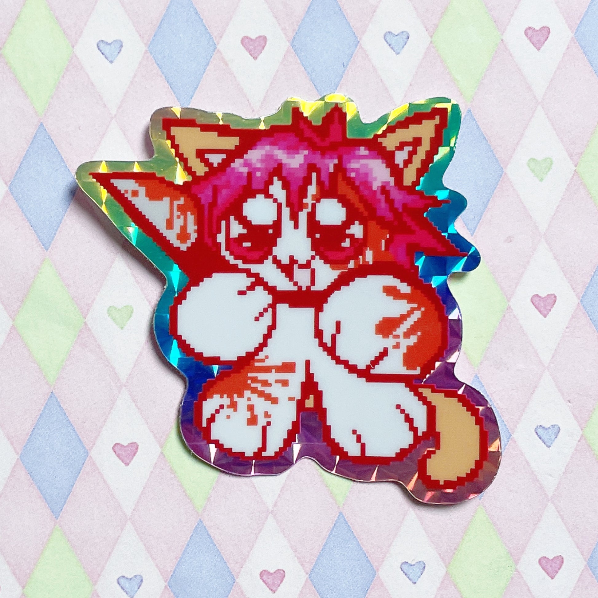 yancat yandere catgirl prismatic rainbow sticker! (2.5")
